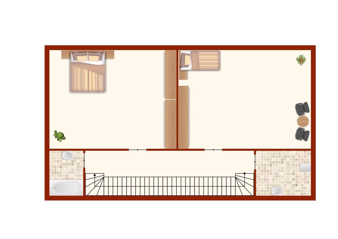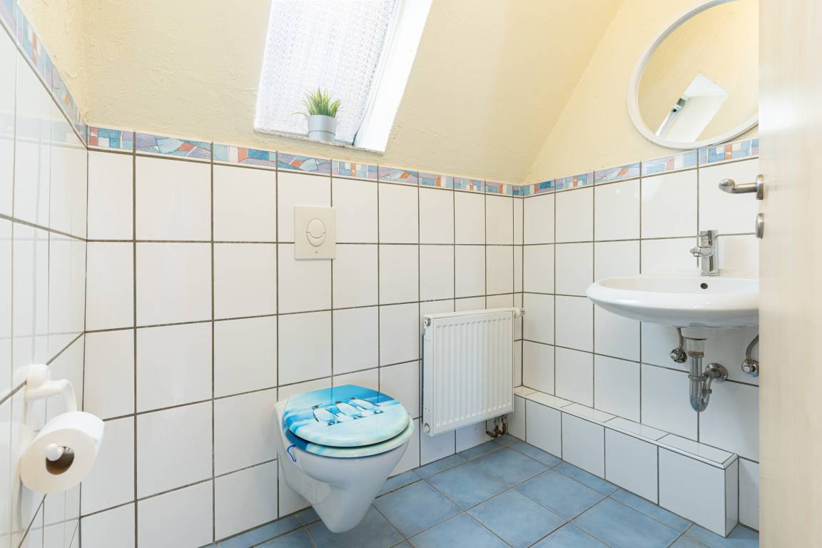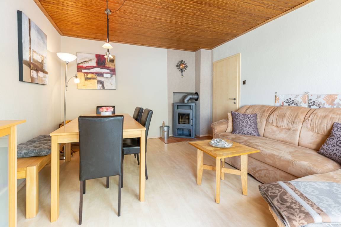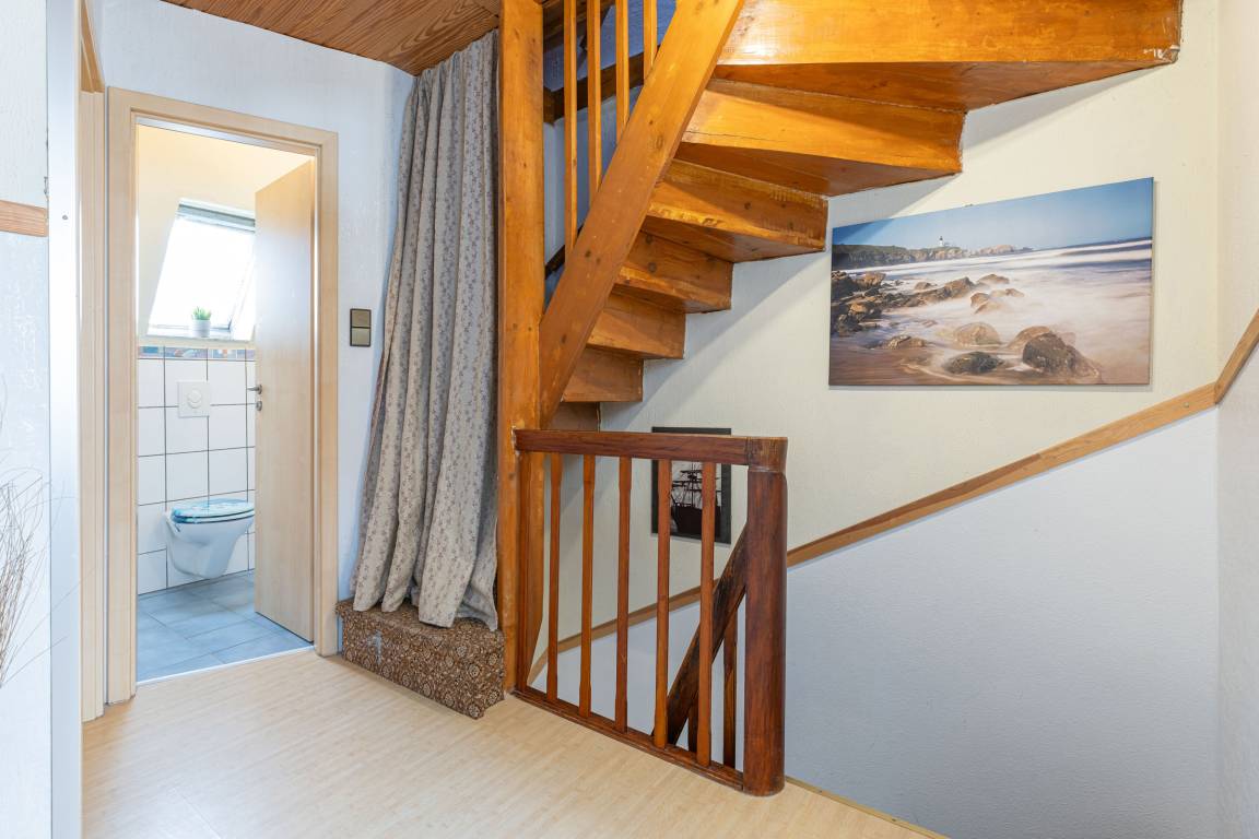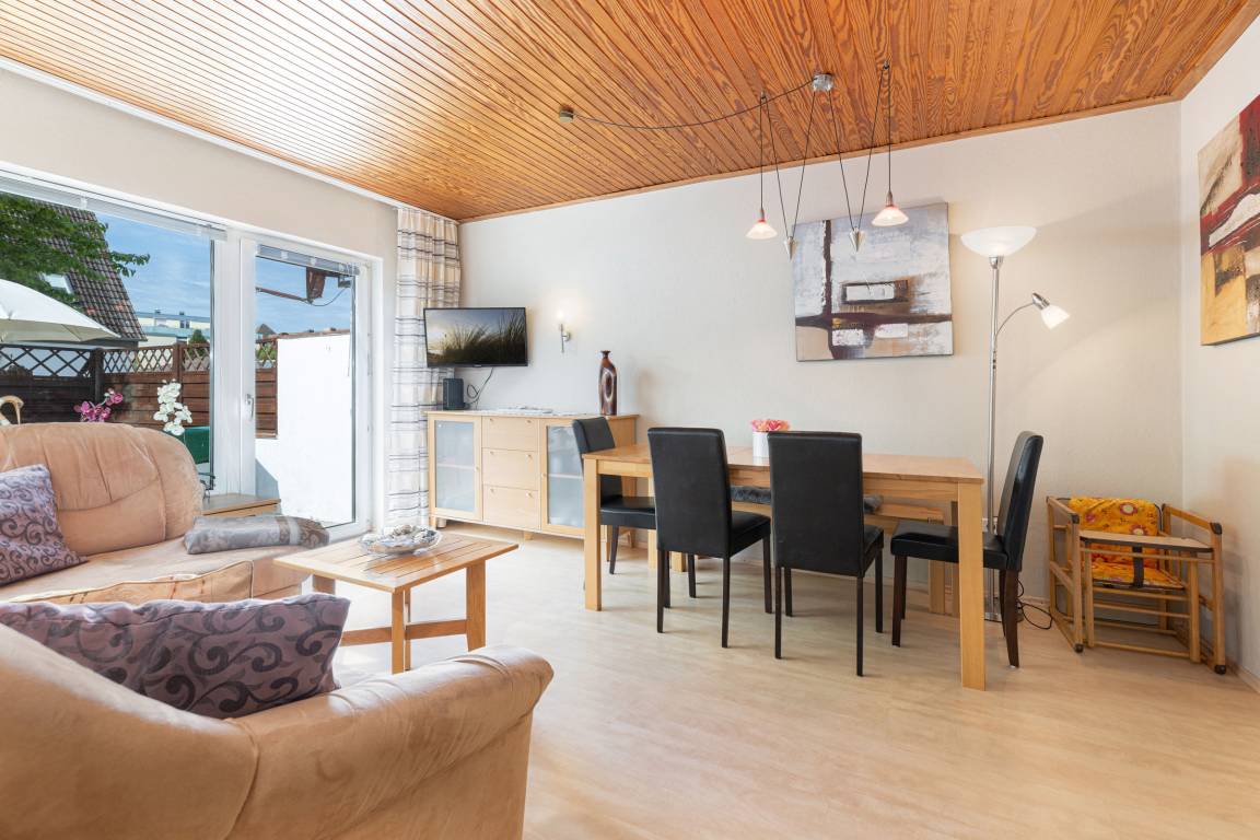 Im Erdgeschoss ist die voll ausgestattete Küche mit einer kleinen Essecke. Im Wohnzimmer haben Sie ausreichend Platz für spannende Spieleabende, kuschelige Stunden vor dem Fernseher oder genießen Sie den Abend mit einem guten Buch. Vom Wohnzimmer gelangen Sie auf die Terrasse. In der ersten Etage sind zwei separate Schlafzimmer. Ein Schlafzimmer mit Doppelbett und Kleiderschrank sowie ein Kinderzimmer mit Einzelbett und Babybettchen. Das Vollbad mit Dusche in der Badewanne befindet sich ebenfalls auf dieser Etage.
