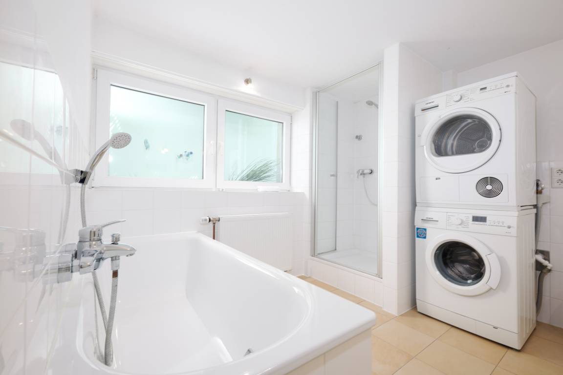 Ein geräumiger Flur empfängt Sie und führt in das großzügige und nordisch-modern eingerichtete Wohnzimmer. Die Sofaecke bietet bei Tag Entspannung nach ausgiebigen Strandspaziergängen und nachts Schlafplätze für zwei Personen. Die zum Wohnzimmer hin offene Küche und der Esstisch ermöglichen gemütliche Stunden des Beisammenseins. Der Blick schweift von der überdachten Terrasse über den kleinen, romantischen Garten bis hin zur Förde. Ein wunderbares Plätzchen, um den Abend vielleicht bei einem guten Tropfen ausklingen zu lassen. Das Schlafzimmer ist mit Schränken für Ihre Urlaubs-Garderobe und einem gemütlichen Doppelbett ausgestattet. Das komfortable Badezimmer verfügt über eine Dusche. Die Badewanne ist genau das richtige nach langen Winterspaziergängen entlang der Küste. Aufgrund der Hanglage verfügt das Bad nur über kleinere Fenster.