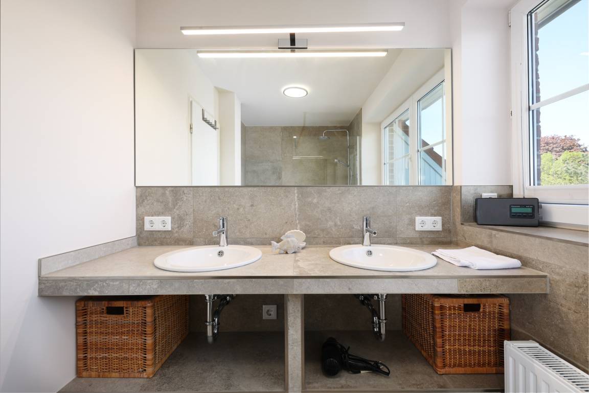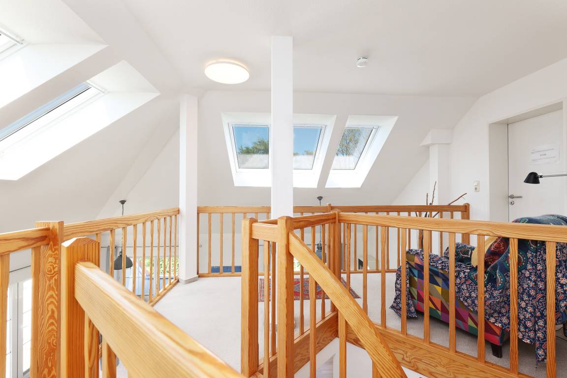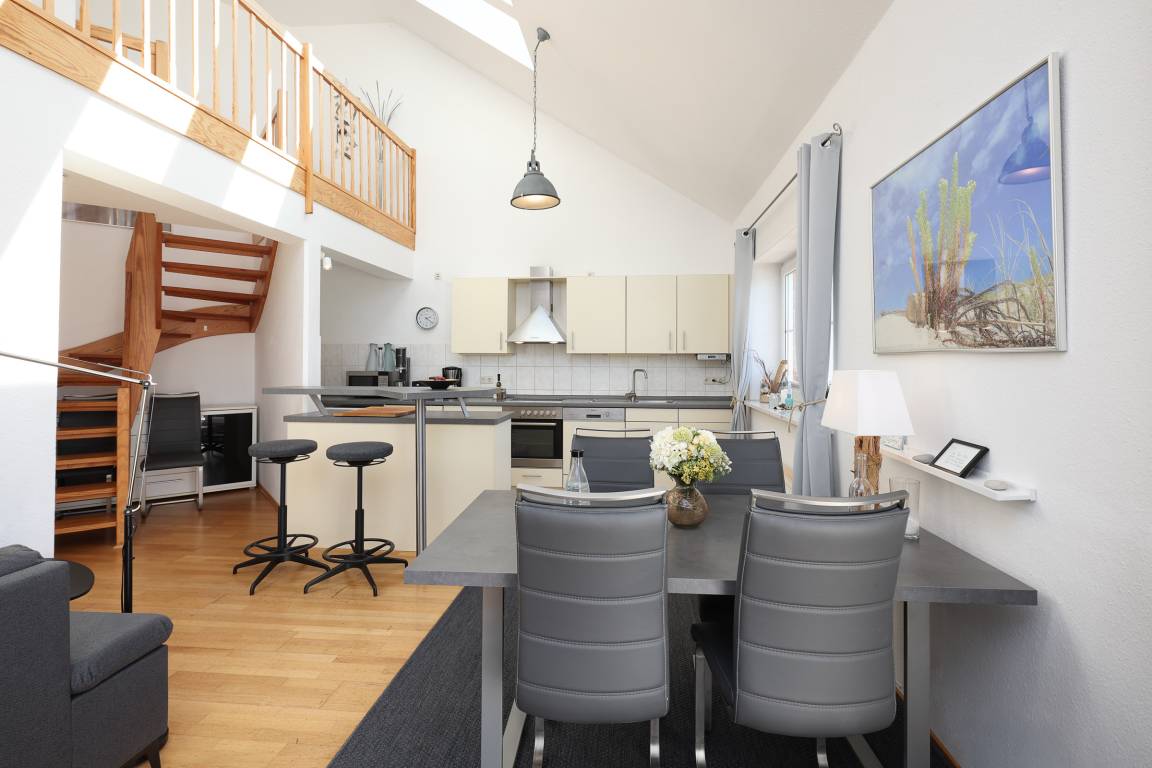Herzlich Willkommen im Baltic Penthouse! Die stilvoll eingerichtete Wohnung verfügt über einen offenen, kombinierten Wohn-Schlaf-Ess- und Küchenbereich mit insgesamt 3 Balkonen und viel Platz zum Wohlfühlen. Der Küchenbereich lässt kaum Wünsche offen: Geschirrspüler, Waschmaschine, Backofen und Mikrowelle sind nur einige Helferlein während Ihres Urlaubs, auf die Sie zurückgreifen können. Ob im Essbereich oder im anschließenden Wohnbereich auf der gemütlichen Wohnlandschaft, die Sie auch zu zwei weiteren Schlafplätzen umbauen können, genießen Sie entspannte Stunden vor dem Flat-TV oder bei einer guten Urlaubslektüre. Letztere können Sie auch bequem im gemütlichen Lesesessel in der oberen Galerie verschlingen. Für den erholsamen Schlaf stehen Ihnen zwei separate Schlafzimmer zur Verfügung, eins mit Doppelbett und eins mit zwei Einzelbetten. Beide haben einen direkten Zugang zum Balkon. Ein modernes Tageslicht-Badezimmer mit einer großzügigen, begehbaren Dusche sowie ein Gäste-WC runden dieses tolle Angebot ab.