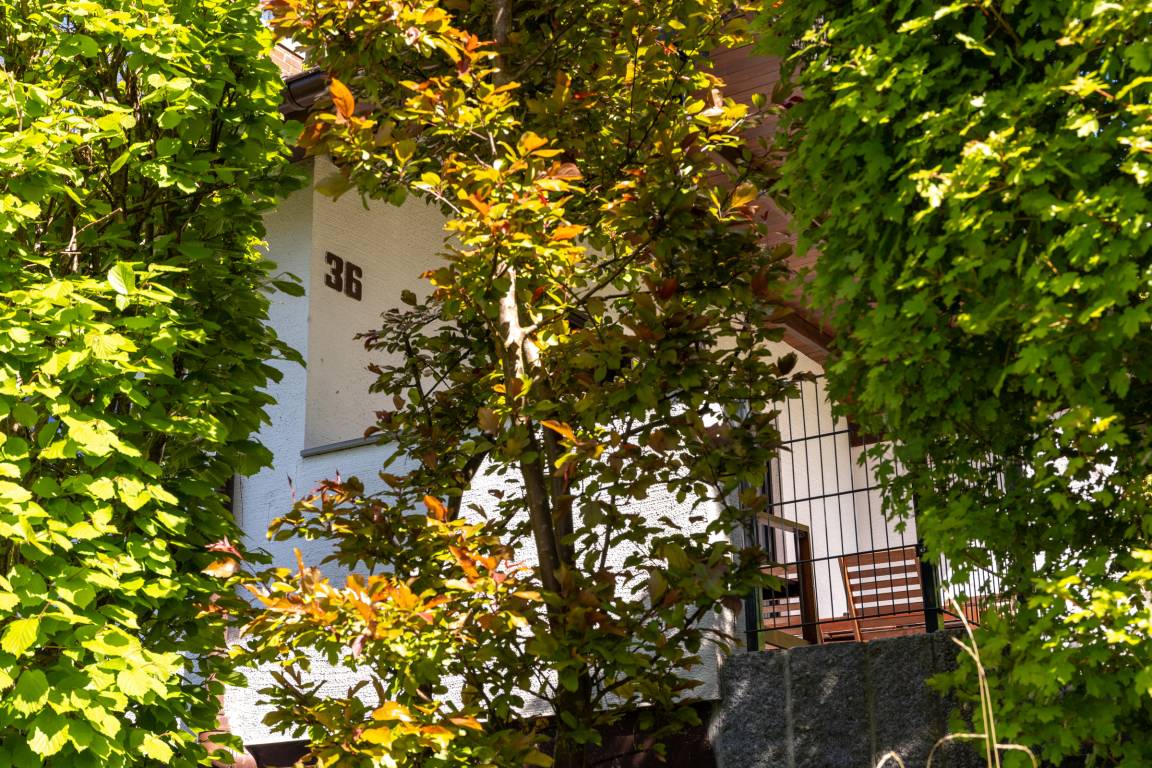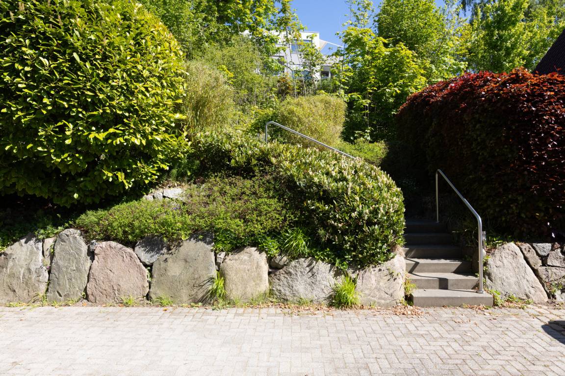 Ein PKW-Stellplatz direkt am Haus steht Ihnen zur Verfügung. Eine Treppe (ca. 12 Stufen) führt Sie zum Ferienhaus.