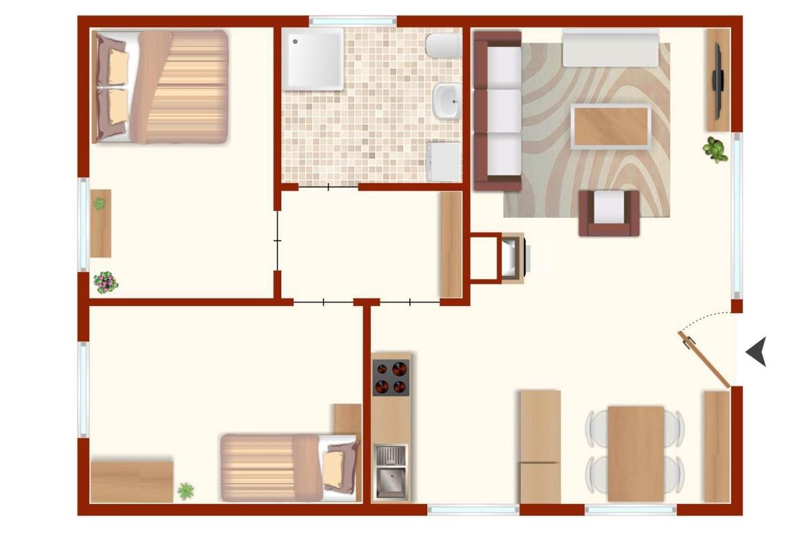 45 m² Ferienhaus ∙ 2 Schlafzimmer ∙ 4 Gäste