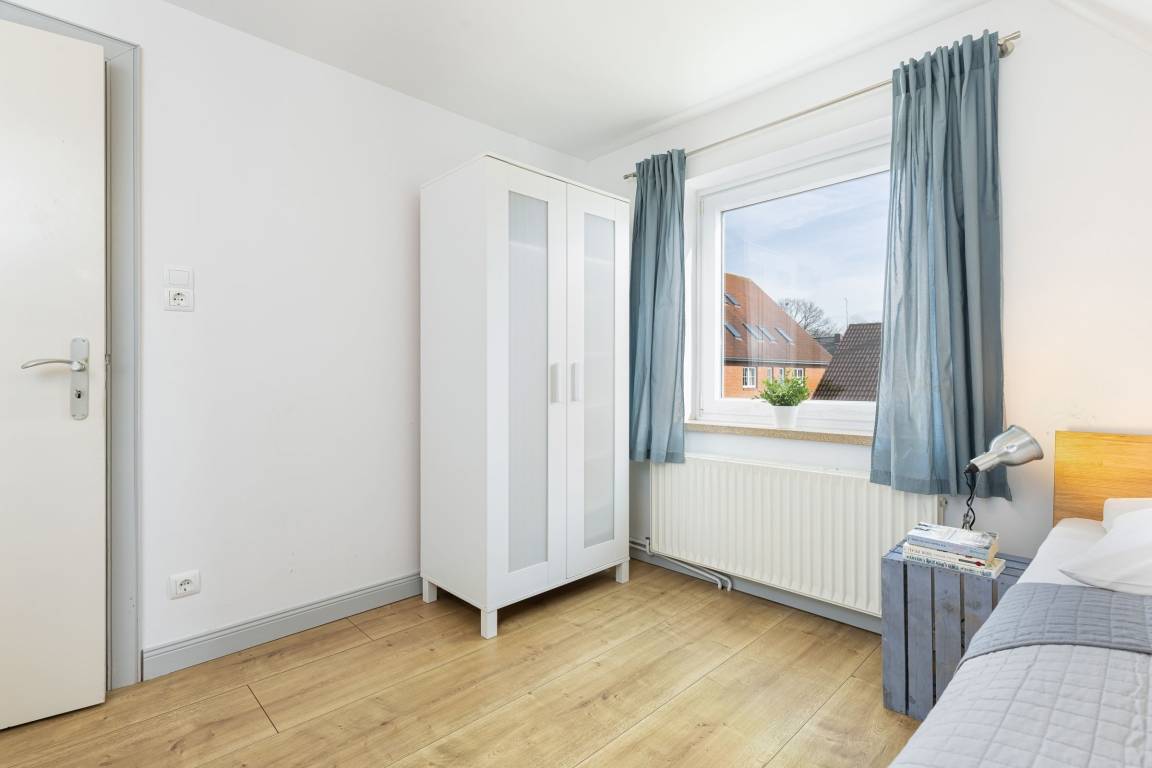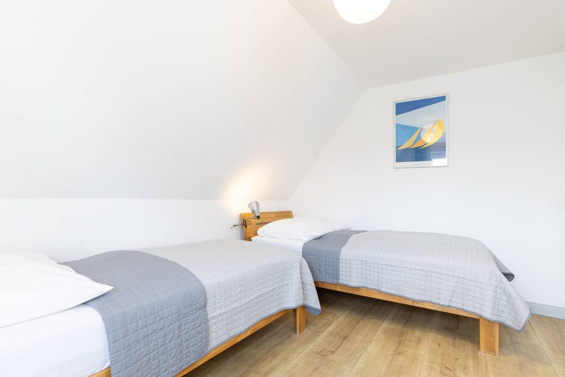 Schlafzimmer 2: 2 Einzelbetten (je 90x200 cm), Kleiderschrank, Verdunkelung (Vorhänge)