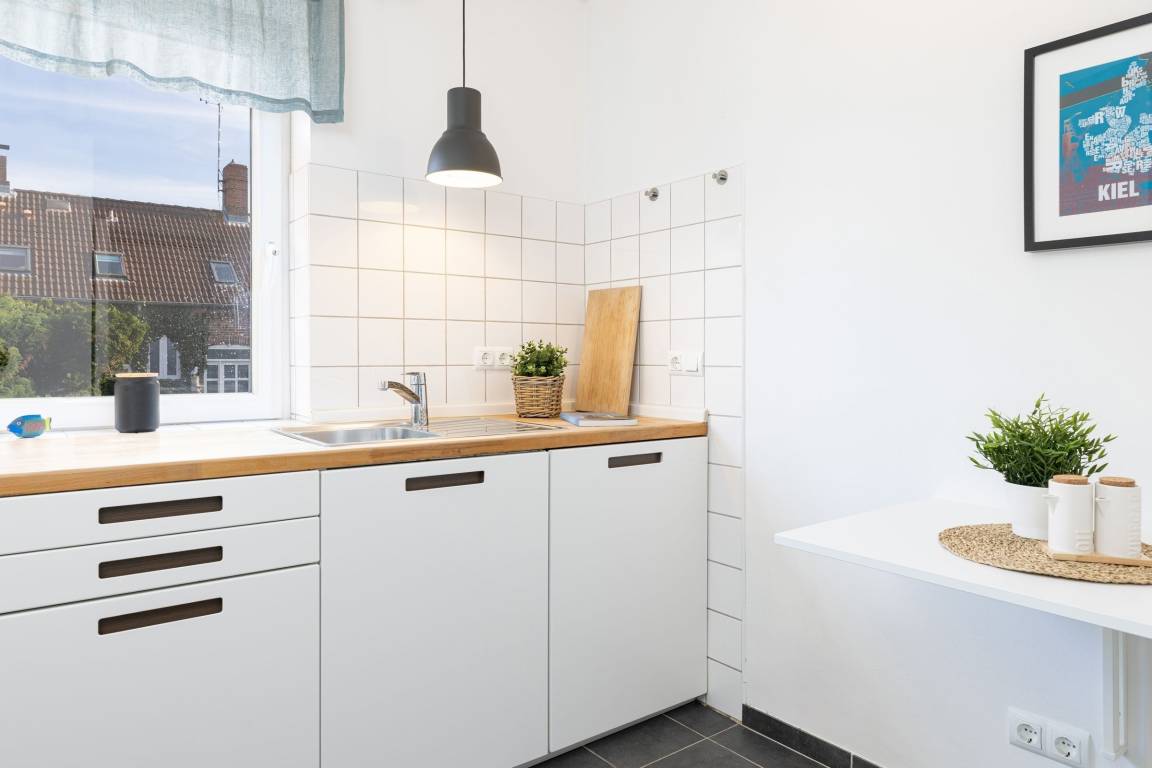 Die Schlüsselübergabe erfolgt über einen Tresor am Kraushaar Ferienwohnungen Servicebüro in der Strandstraße 10, 24235 Laboe.