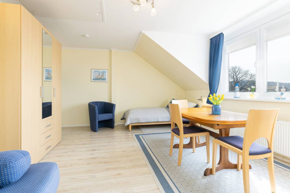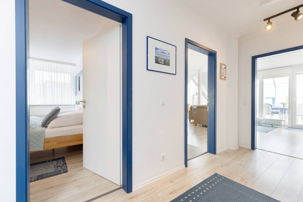 Das geschmackvolle und modern eingerichtete 3-Zimmer Appartement Ostseekrabbe liegt in der 2. Etage eines ansprechenden Appartementhauses direkt am neu gestalteten Hafen von Laboe. Die Wohnung ist großzügig geschnitten, so dass dort bis zu 4 Personen bequem Platz finden. Ein heller großer Flur führt zum kombinierten Wohn- Esszimmer mit Zugang zum Balkon. In der voll ausgestatteten offenen Küche haben Sie die Möglichkeit wie zu Hause zu kochen. Der geräumige Wohnbereich bietet Ihnen Platz für gesellige Stunden. Vom Wohnzimmer aus gelangen Sie auf den Balkon, der mit einer elektrisch betriebenen Markise ausgestattet ist und Ihnen an heißen Sommertagen Schatten spendet. Einen kleinen Vorgeschmack von dem traumhaften Ausblick sehen Sie in der Bildergalerie. Übrigens alle Front- und Balkonfenster sind mit Sonnenschutzrollos und elektrischen Außenrolläden ausgestattet . Vom Flur aus gehen die beiden separaten Schlafräume und das große Tageslicht helle Duschbad ab. Das eine Schlafzimmer mit Doppelbett ist maritim eingerichtet. Wogegen das andere Schlafzimmer auch als ruhiger Rückziehort oder Kinderzimmer genutzt werden kann. Hier haben Sie ein gemütlich eingerichtetes Zimmer mit einer Schlafcouch für 2 Personen, ein Einzelbett und den Ausblick auf die Kieler Förde.