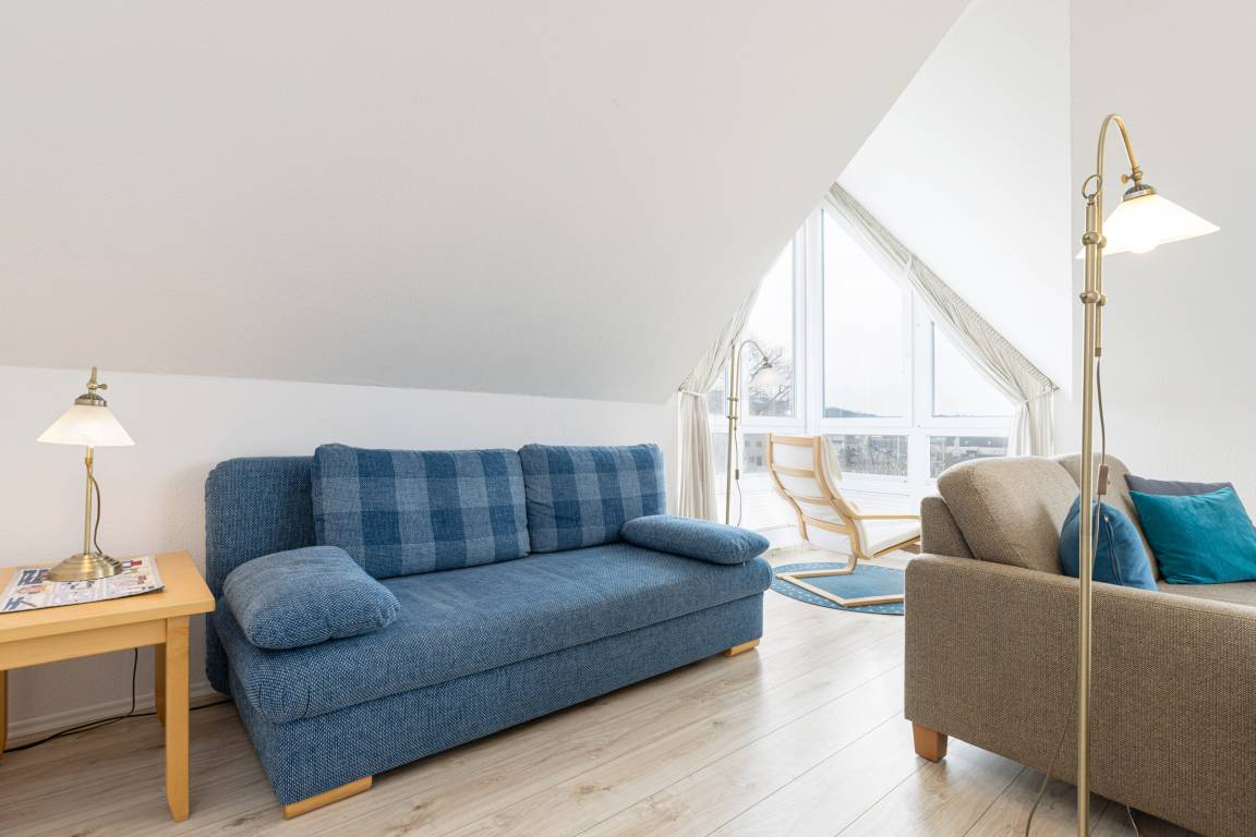 Wohnzimmer: Schlafcouch (160x190 cm), TV, Verdunkelung: Rollos