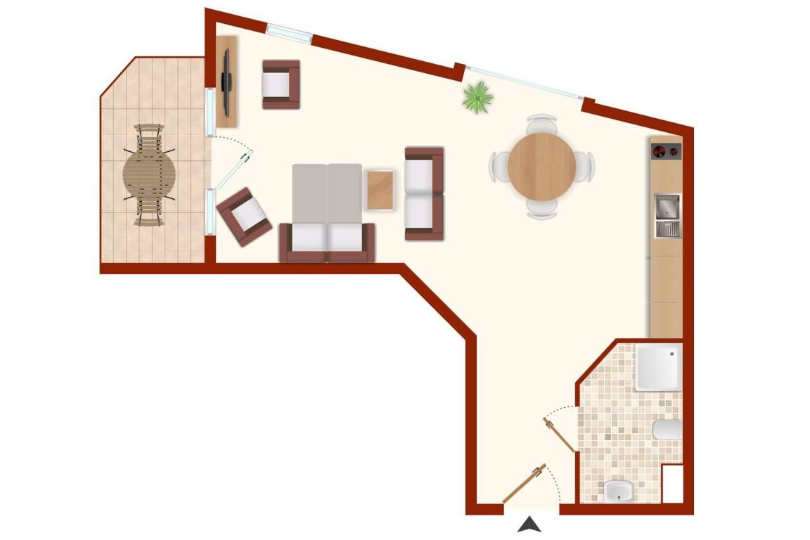 41 m² Ferienwohnung ∙ 1 Schlafzimmer ∙ 2 Gäste