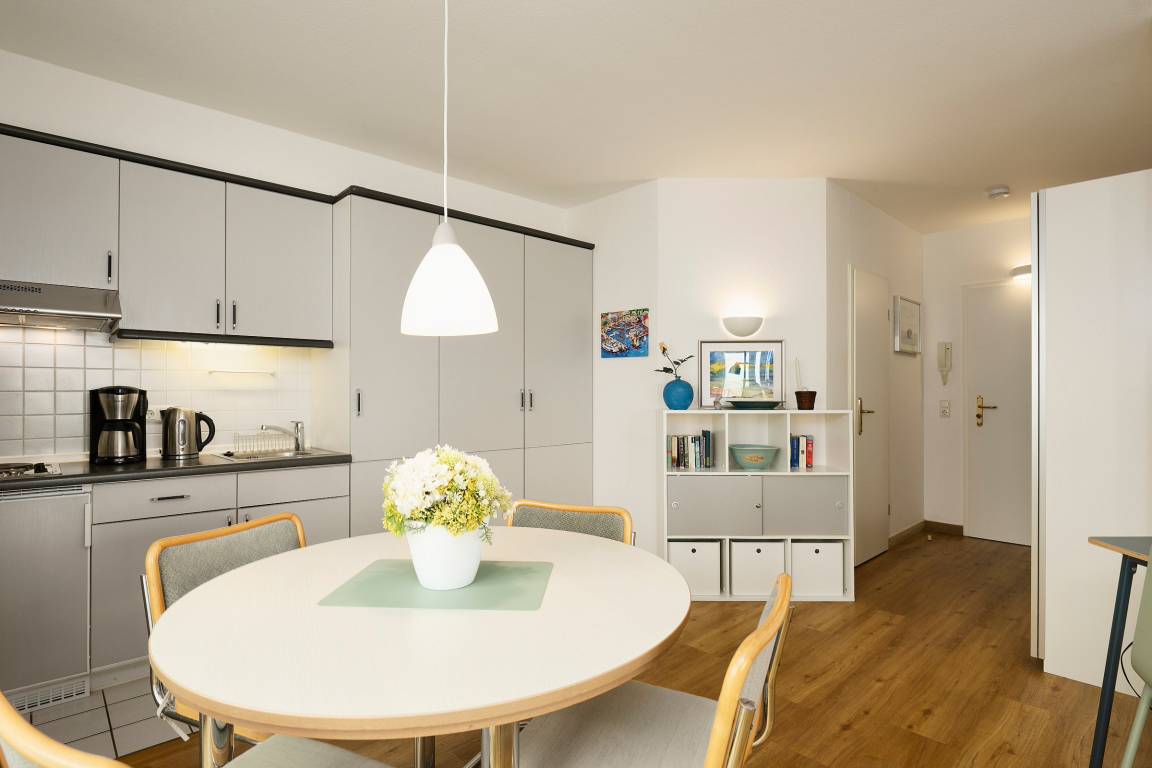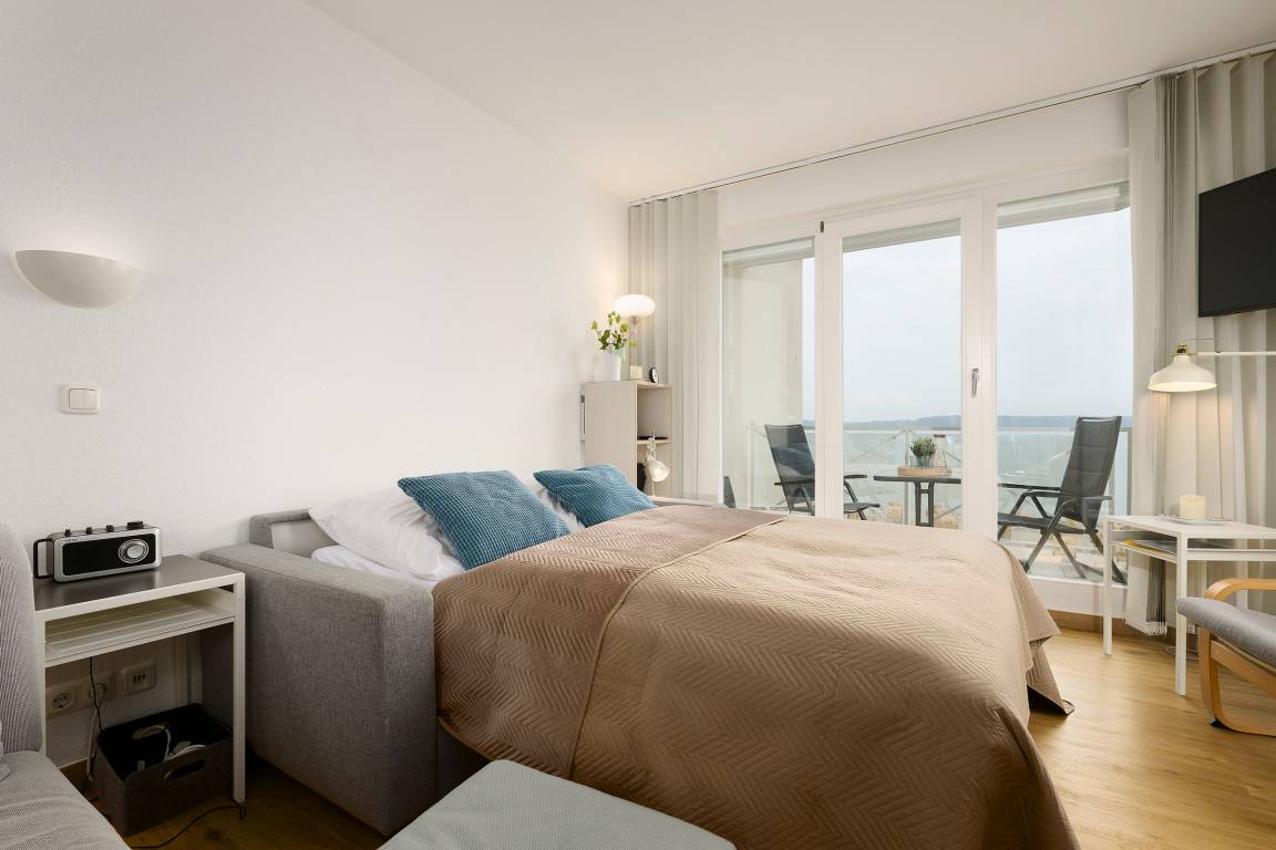 Das großzügige 1-Zimmer-Appartement liegt in der 2. Etage des "Strandhotels". Hier können bis zu zwei Personen einen erholsamen Urlaub verbringen.