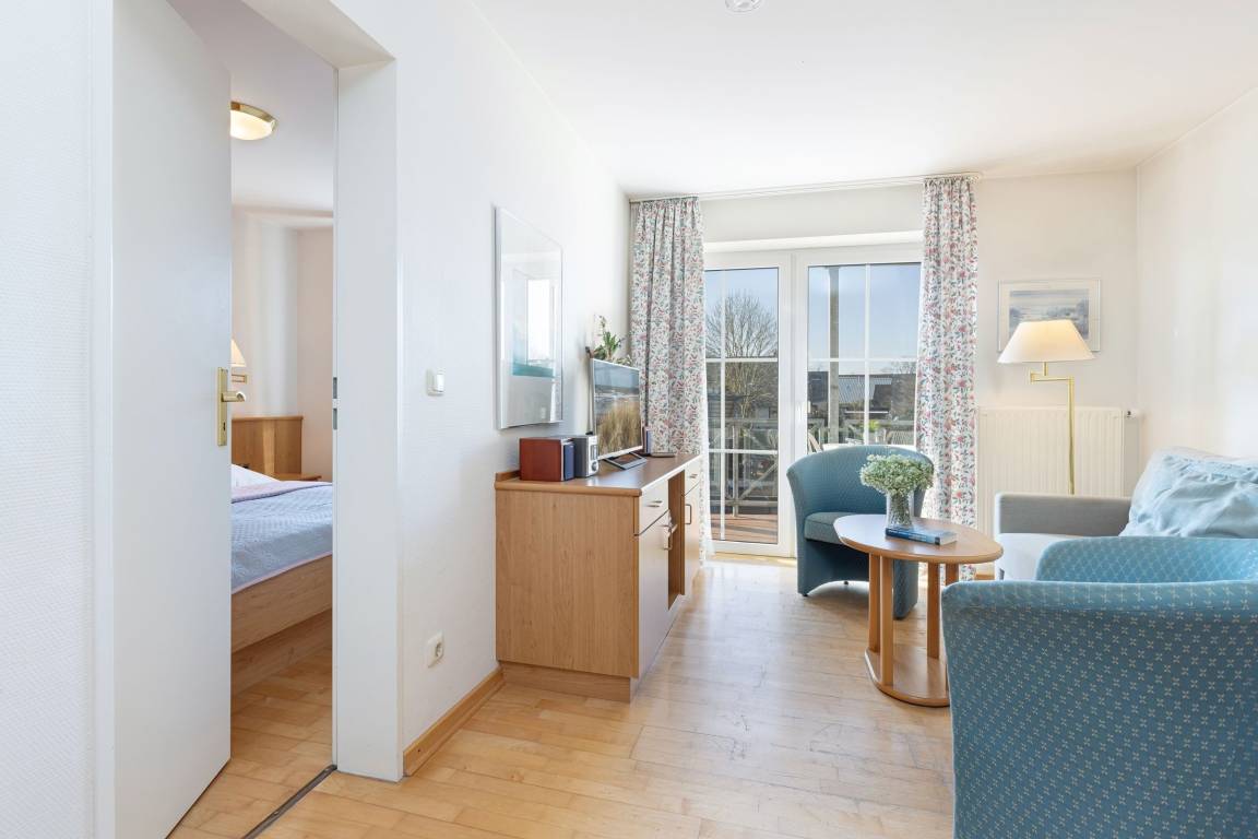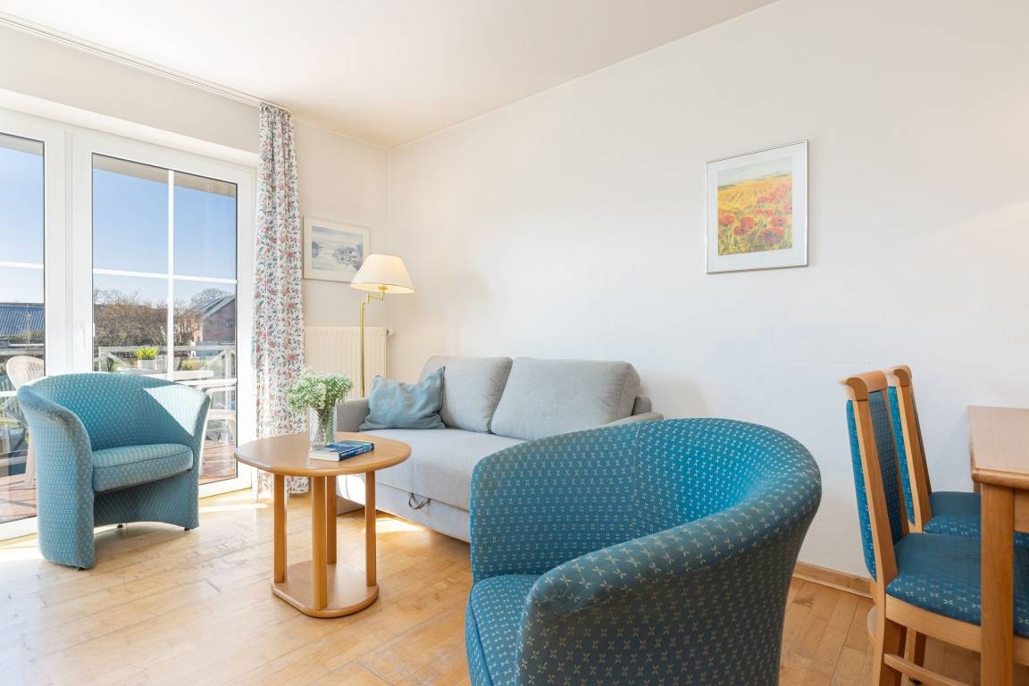 Die 40 m² große Wohnung verfügt über einen Wohn-/Schlafraum mit Schlafsofa, einen Schlafraum mit Doppelbett, Farb-TV, Stereo-Anlage, eine gut ausgestattete Küchenzeile, Essecke sowie über ein helles Badezimmer mit Dusche. Ein eigener Balkon erwartet Sie ebenfalls.