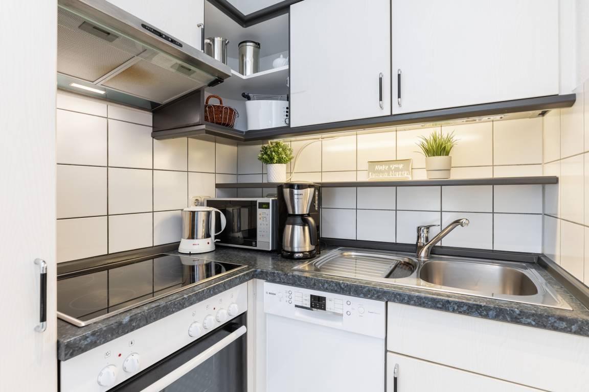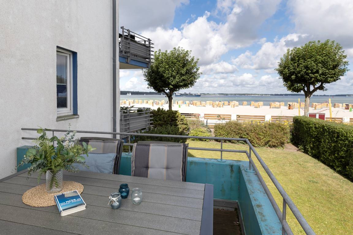 Das große Wohnzimmer bietet Platz für eine separate Essecke. Weiter ist es mit einer Couchgarnitur, Schlafsofa und Internetradio ausgestattet. Im Schlafzimmer steht Ihnen ein großes Doppelbett zur Verfügung. Insgesamt ist es für bis zu 4 Personen geeignet. Auch Hobbyköche kommen voll auf ihre Kosten. Die Küche ist mit allen technischen Geräten ausgestattet. Vielleicht probieren Sie einmal den frisch gefangenen Fisch direkt vom Kutter. Den großen Flachbildfernseher werden Sie bei dem traumhaften Ausblick auf die Kieler Förde sicherlich nicht so häufig benutzen. Vom geräumigen Balkon haben Sie einen schönen Blick auf den den Strand, die Kieler Außenförde und die vielen vorbeifahrenden Schiffe.