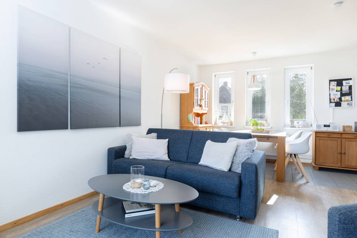 Wohnzimmer: 1 Schlafsofa, TV, Verdunkelung: Gardinen