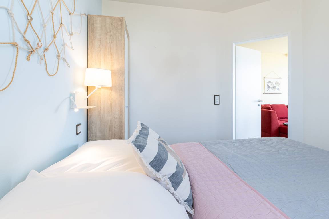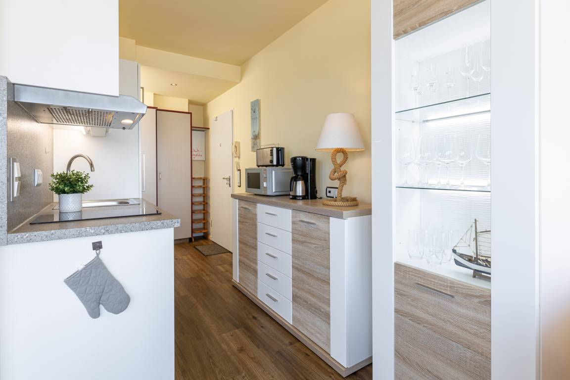 Die gut ausgestattete Wohnung ist für max. 2 Personen geeignet und unterteilt sich in ein großzügiges Wohnzimmer mit Sofa und angrenzendem Essbereich und offenem Küchenbereich, ein gemütliches Schlafzimmer mit Boxspringbett (160x200 cm) und ein Duschbad mit Handtuchheizung. Vom Balkon haben Sie einen schönen Blick auf den Strand, die Kieler Außenförde und die vielen vorbeifahrenden Schiffe. Der perfekte Platz für den ersten Kaffee am Morgen und laue Abende mit einem Gläschen Wein.