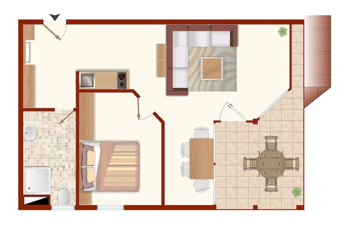 42 m² Ferienwohnung ∙ 1 Schlafzimmer ∙ 2 Gäste