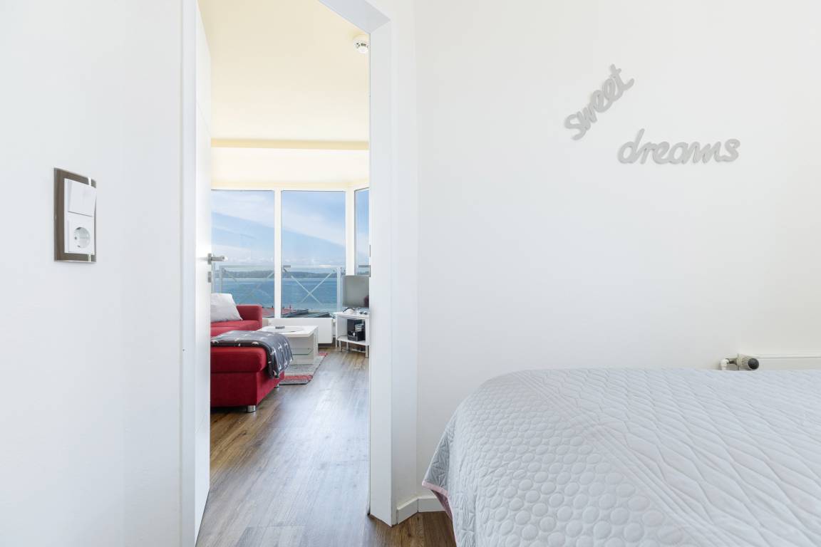 „Wir hatten einen wunderschönen Urlaub in Laboe. Die Aussicht über die Kieler Förde vom Balkon, vom FrühstücKstisch und vom Sofa einfach grandios! Liebevolle AUSSTATTUNG der Wohnung, Für uns hätte die Wohnung allerdings etwas mehR Stauraum haben können, wiR hatten Schwierigkeiten unser Gepäck zu verstauen. Da zur Wohnung kein Tiefgaragenplatz gehört, Haben wir Packtaschen und anderes zubeHör auch in der Wohnung verstauen müssen. Ein sehr netter Hausverwalter? Hat uns erlaubt zumindest unsere Pedelecs in der Tiefgarage abzustellen, wäre sonst schwierig gewesEn!“