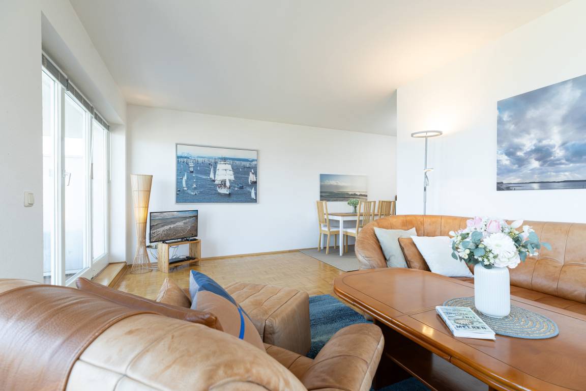 „Der Fernseher und Wlan funktionierten leider nicht, wobei der Fernseher meiner Meinung nach auch nicht mehr zeitgemäß ist. Die Wohnung zeichnet sich aus durch die schöne Lage und eine wunderschöne Sicht auf die Kieler Förde.“
