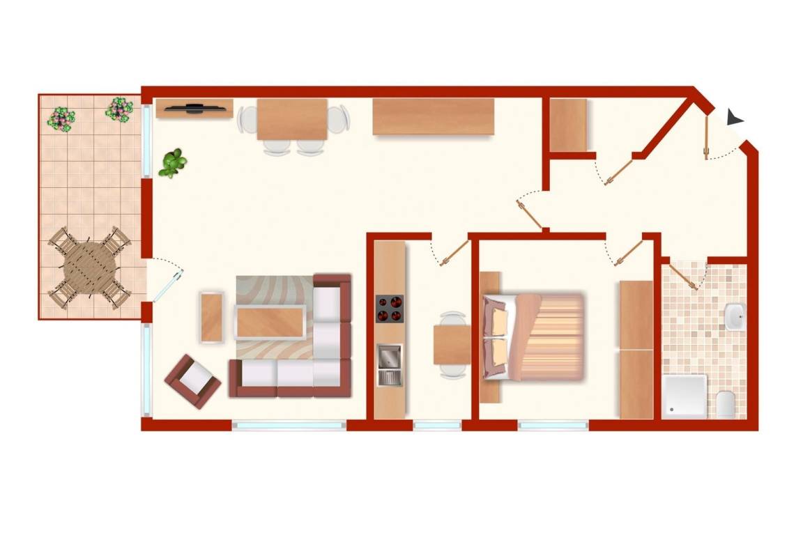 60 m² Ferienwohnung ∙ 1 Schlafzimmer ∙ 2 Gäste