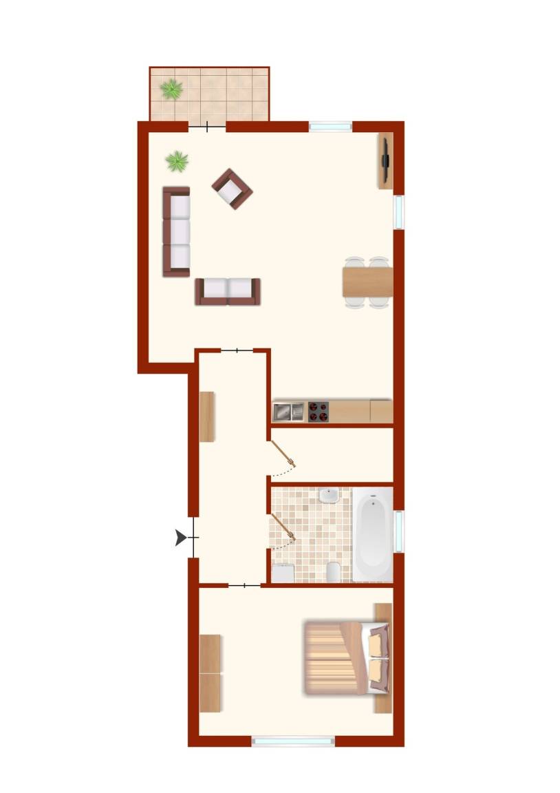 54 m² Ferienwohnung ∙ 1 Schlafzimmer ∙ 2 Gäste