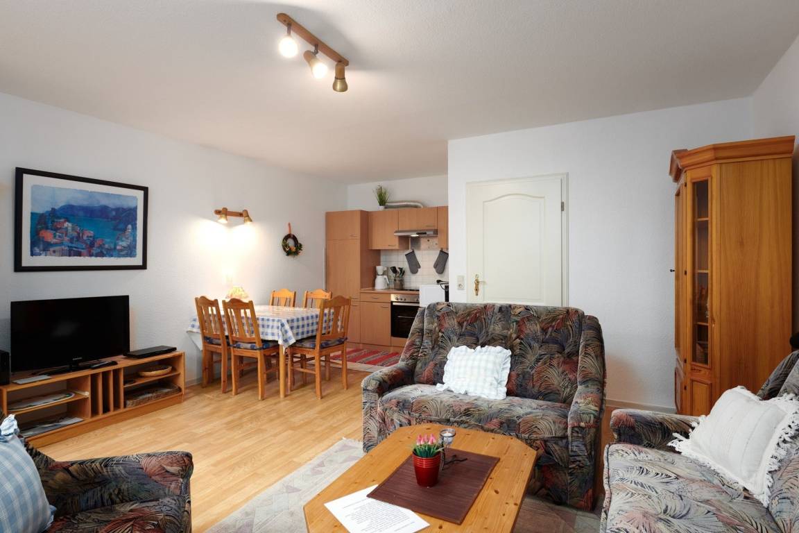Diese helle und freundliche Wohnung im Erdgeschoss eines Mehrfamilienhauses ist ruhig gelegen. Die Wohnung ist aufgeteilt in Wohnzimmer mit integrierter Kochnische, Schlafzimmer und Bad. Das Schlafzimmer ist mit einem Doppelbett (2x 90x200 cm) ausgestattet und der Kleiderschrank bietet ausreichend Raum für Ihre Garderobe. Das Badezimmer ist mit einer Badewanne mit Duschabtrennung ausgestattet.