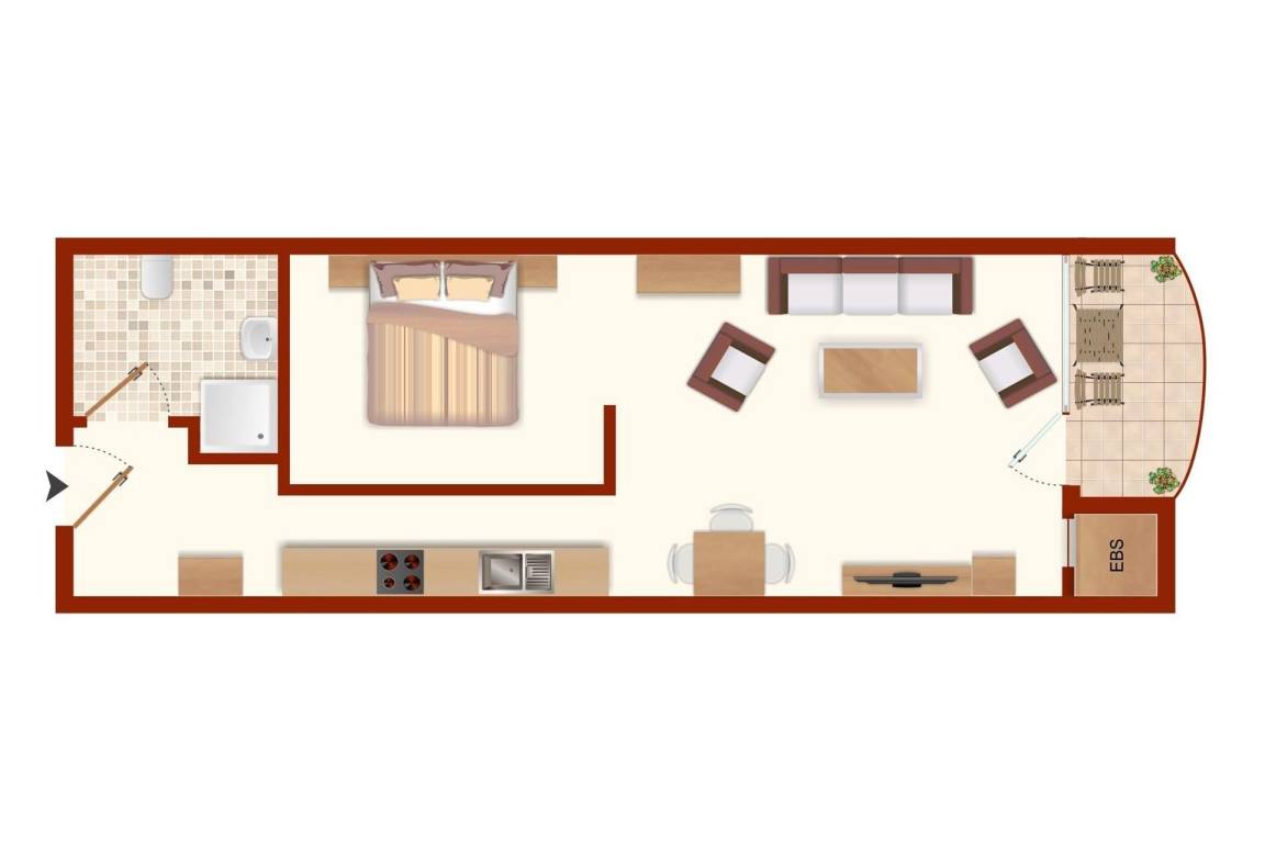 40 m² Ferienwohnung ∙ 1 Schlafzimmer ∙ 3 Gäste
