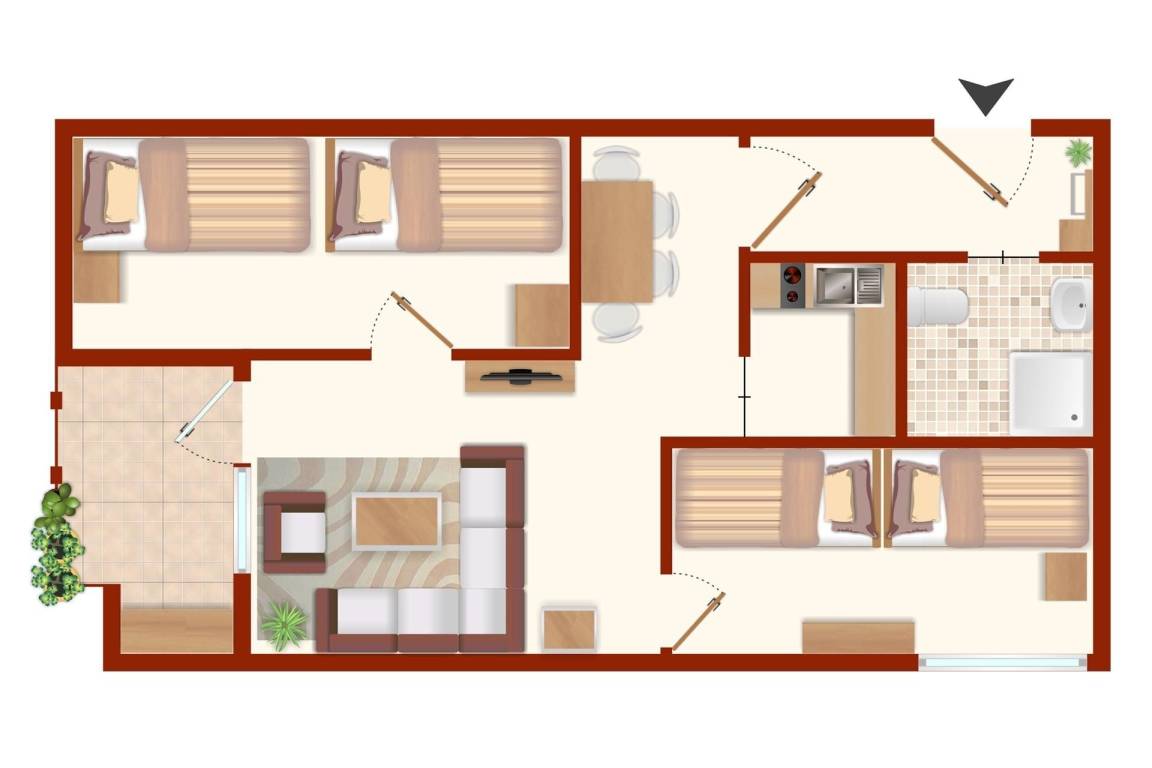 46 m² Ferienwohnung ∙ 2 Schlafzimmer ∙ 4 Gäste