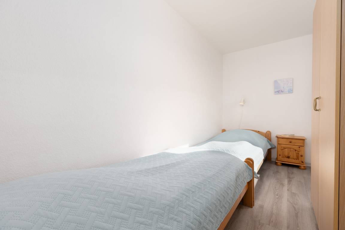 Schlafzimmer 2: 2 Einzelbetten (je 90x200cm), Kleiderschrank, Verdunkelung: Vorhänge, kein Platz für Babybett vorhanden