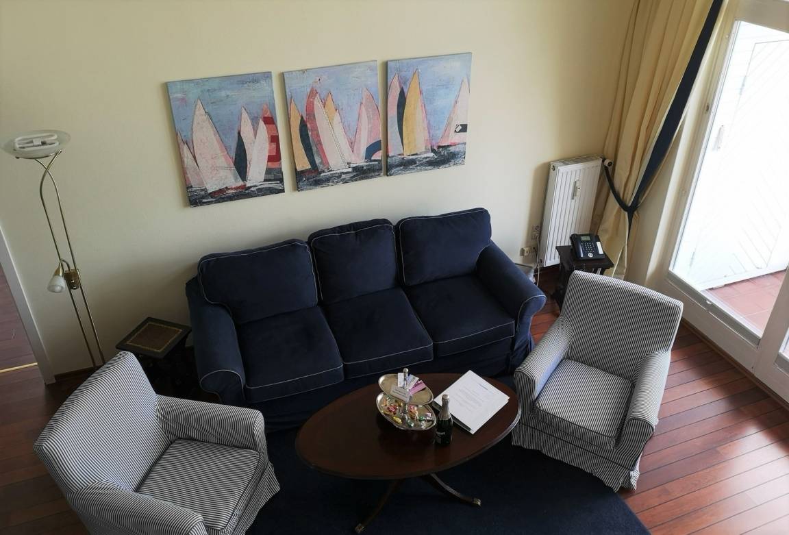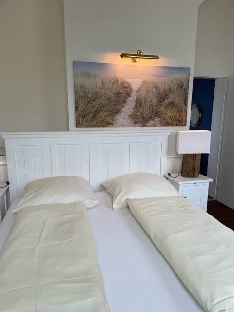 Im Schlafzimmer gibt es ein großes Doppelbett und Kleiderschrank. Im gemütlichem Wohnzimmer stehen ein großes Sofa, sowie 2 Sessel bereit. Im Winter können Sie hier am Kamin den Urlaub genießen. Das Appartement ist mit viel Liebe zum Detail eingerichtet.Der Strand liegt direkt vor Ihrer Haustür und vom Balkon haben Sie einen