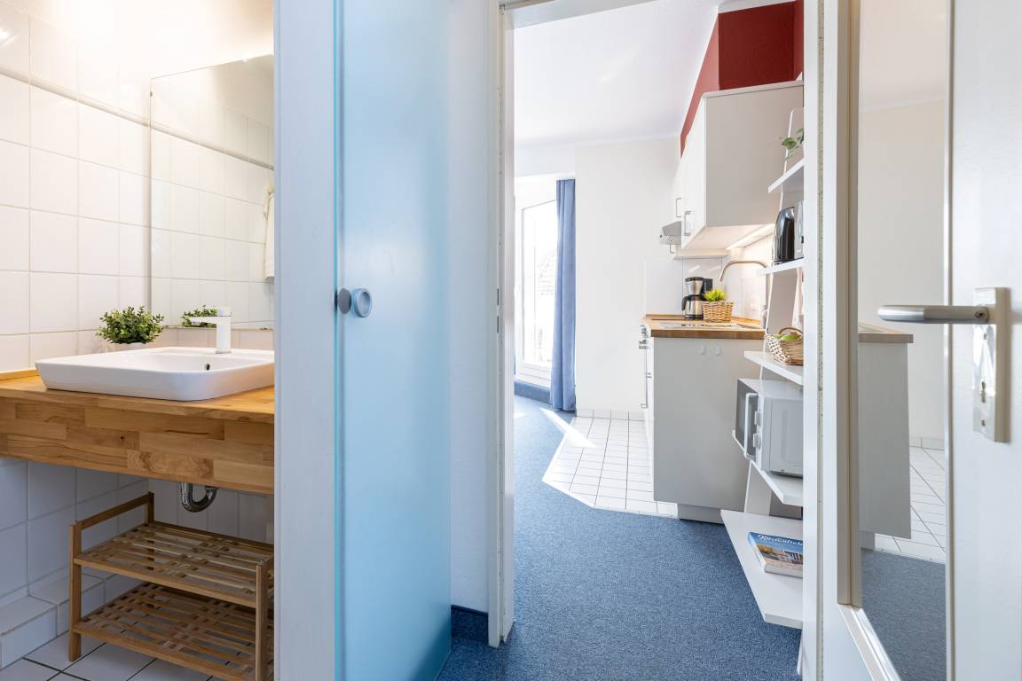 In diesem 2-Zimmer-Appartement im Hochparterre mit Fördeblick ist auf ca. 42 m² Wohnfläche ausreichend Platz für 2 Erwachsene und 2 Kinder.
