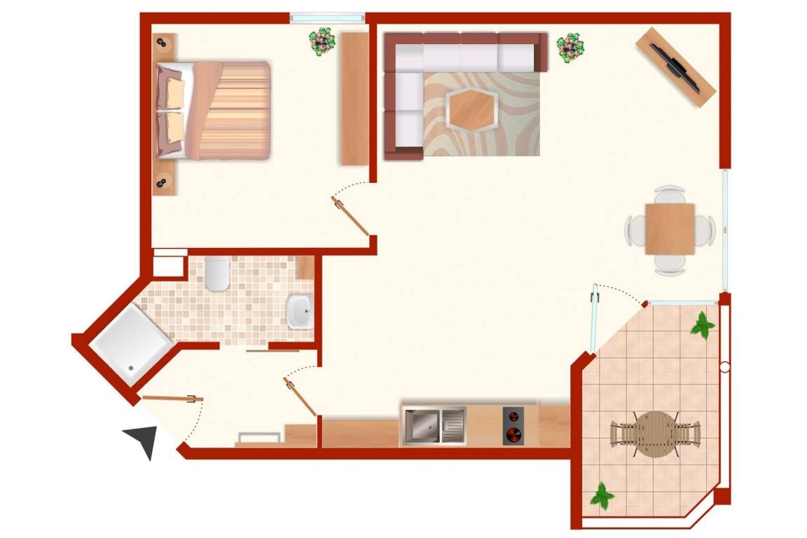 42 m² Ferienwohnung ∙ 1 Schlafzimmer ∙ 2 Gäste