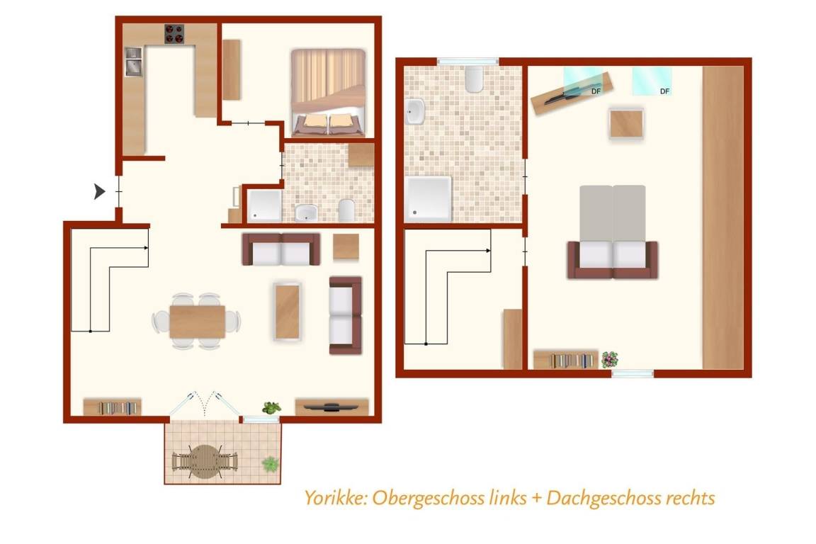 95 m² Ferienwohnung ∙ 2 Schlafzimmer ∙ 6 Gäste
