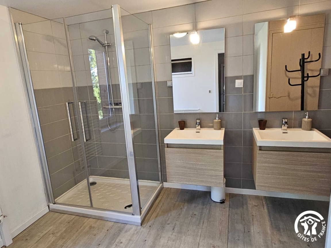 „Accueil parfait et chaleureux. Logement propre, literie de qualité. Un peu déçue de l'accès indirect entre la maison et la terrasse. Peut-être faudrait-il des ustensiles en plus ou différents (une casserole plus grande ou des maniques par exemple) .“