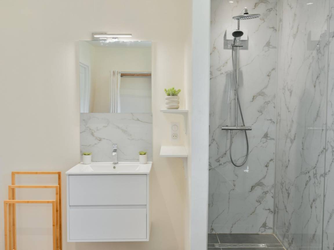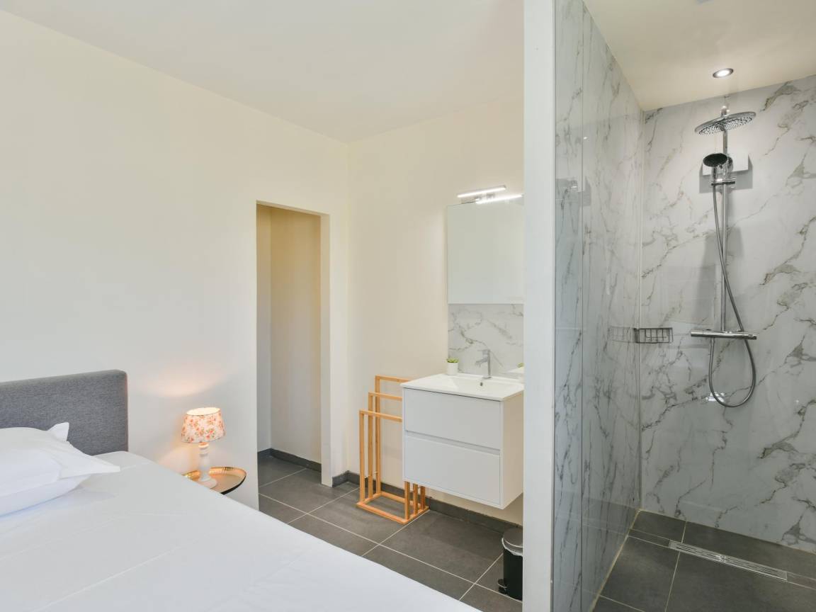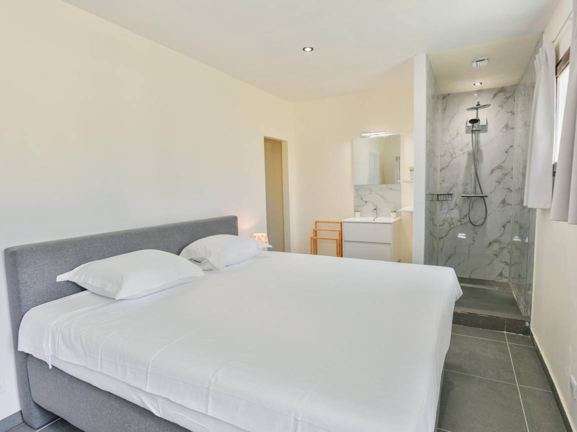 Layout : Parterre: offene Küche mit Kochherd(Induktion), Dunstabzugshaube, Kaffeemaschine(Filter), Backofen(elektrisch), Mikrowelle, Geschirrspüler, Kühl-/Gefrierkombination , Wohn/Esszimmer mit TV(Satellit), Esstisch, Sitzecke , Schlafzimmer mit Badezimmer mit Doppelbett(180 x 200 cm), Dusche, Waschbecken, Toilette , Abstellraum, Klimaanlage