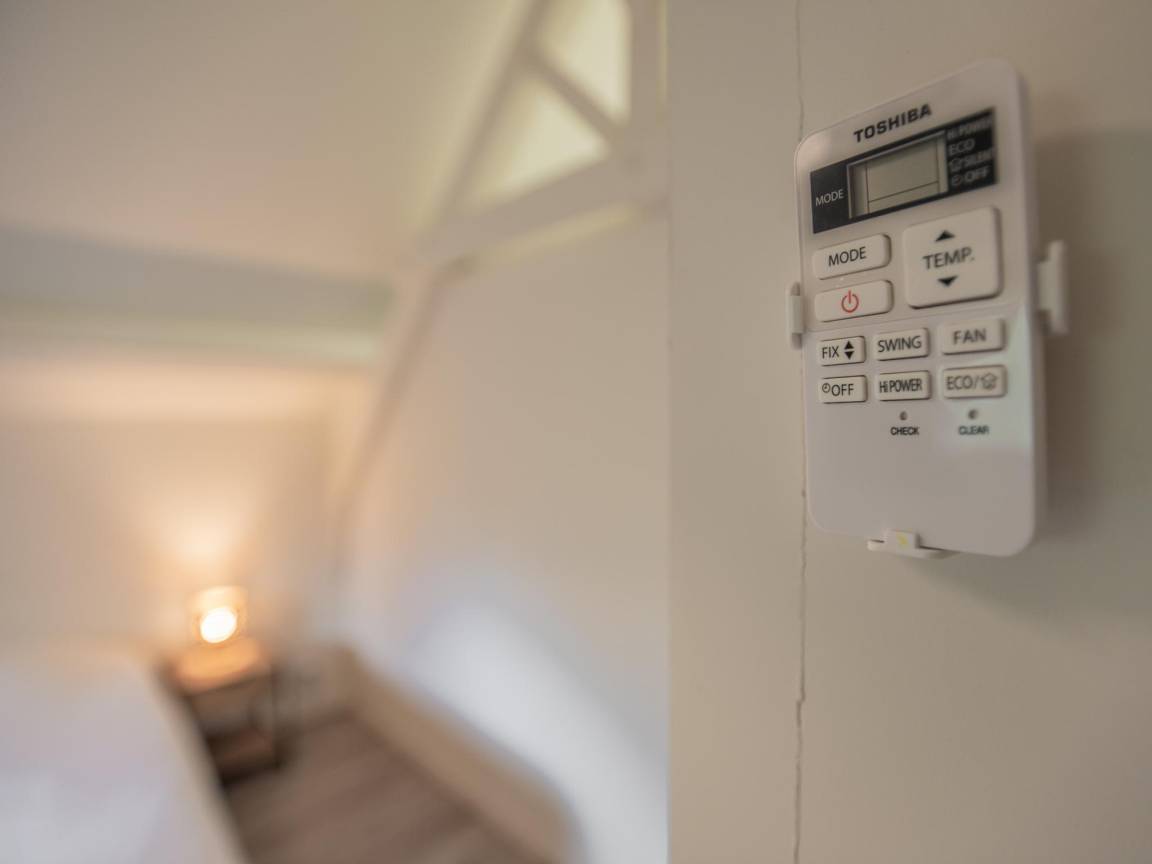 In der 1. Etage: Schlafzimmer mit 2x Einzelbett , Badezimmer mit Badewanne mit Dusche, Waschbecken, Toilette , Klimaanlage