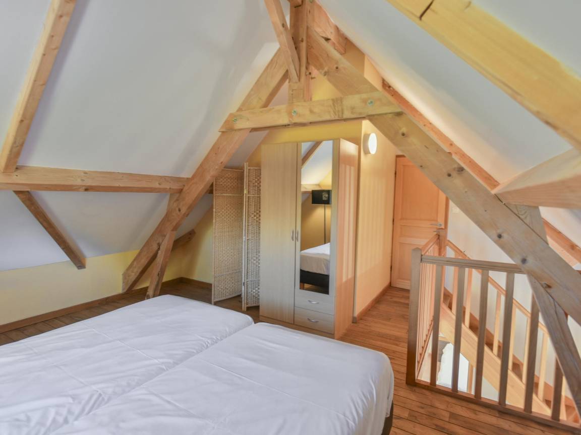 In der 1. Etage: Schlafzimmer mit Badezimmer mit 2x Einzelbett(90 x 200 cm), Dusche, Waschbecken , Empore mit 2x Einzelbett(90 x 200 cm) , Toilette