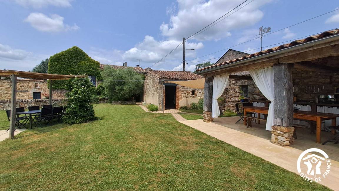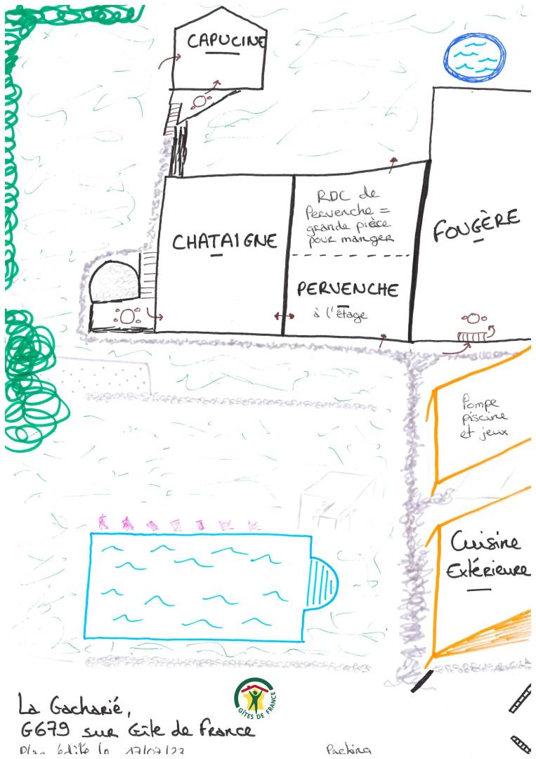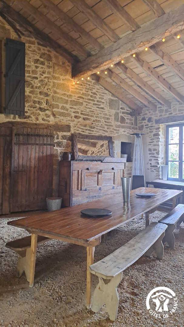 „Gïte spacieux, idéal pour grandes familles, avec cuisine d'été suffisamment équipée pour y prendre tous les repas; on cohabite avec quelques insectes, mais nous avons choisi la campagne...“