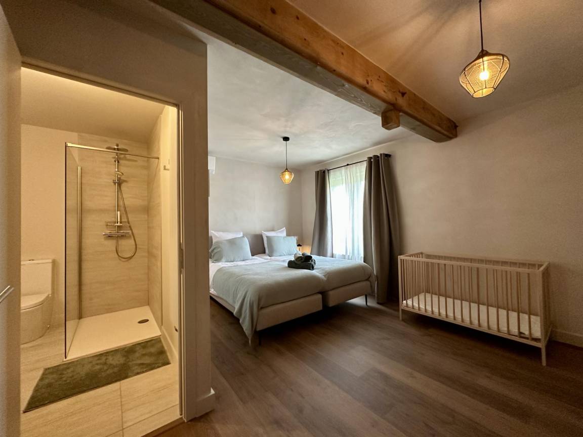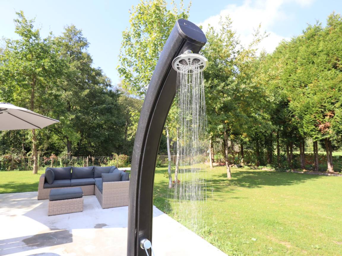 Hottub, Dusche(im Garten), Terrasse, Garten(alleinige Nutzung, umzäunt, 100 cm hoch, 2800 m²), Gartenmöbel, BBQ(Holzkohle), 10x Parkplatz, 2x Boulebahn, 1x Kinderbett (ohne Bettwäsche), 1x Hochstuhl, Gartenlounge, Sonnenschirm