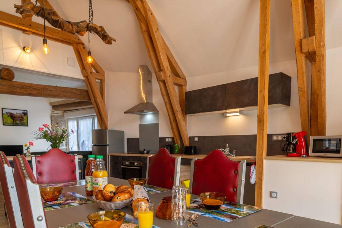 „Gîte bien aménagé, propre et spacieux. L accueil était au top !Un vrai bol d air frais dans un cadre superbe: Les montagnes, les vaches avec le soleil en prime.“