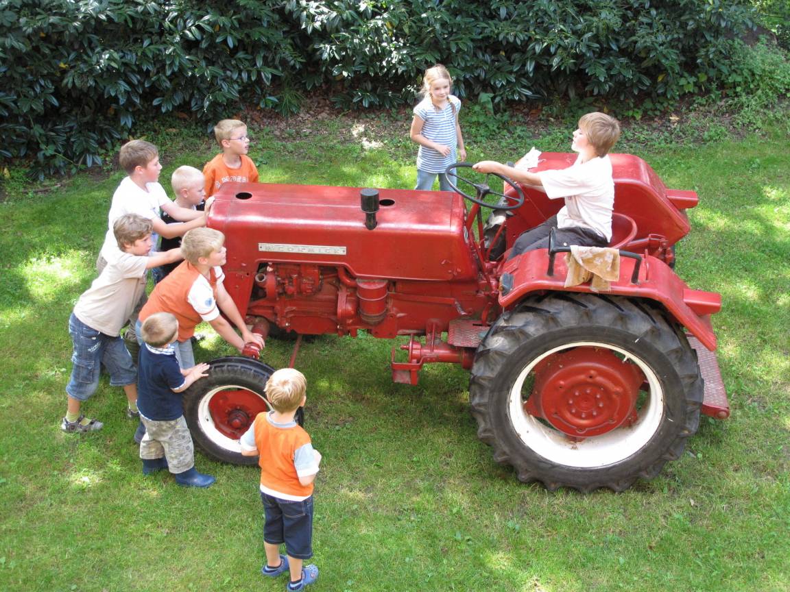 Kletterwand, Spielscheune, Großes Trampolin, viele Fahrzeuge für Kinder, großer Sandkasten und viele andere Spielmöglichkeiten, sowohl Innen als auch Außen.