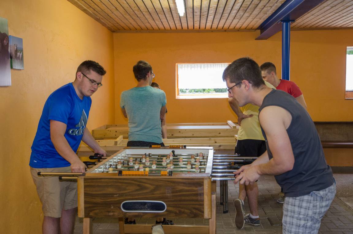 Ein großer Freizeitraum mit Kamin und Küchenzeile auch für Gruppen