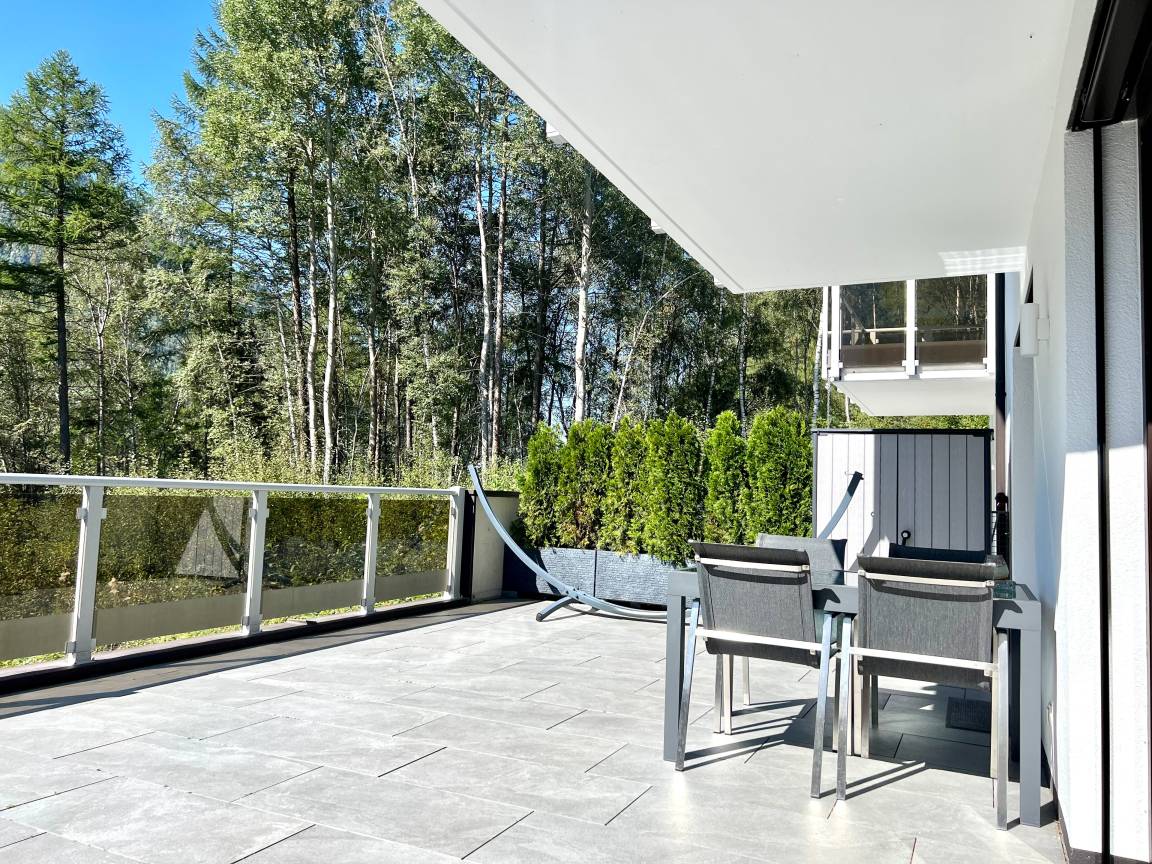 Freuen Sie sich auf eine moderne, top ausgestattete Wohnung mit Bergblick, einer großen Sonnenterrasse mit Hängematte und Outdoor-Lounge und einem eigenen Tiefgaragenstellplatz. Ideal zum Wandern, Skifahren und Entspannen - auch mit Hund.