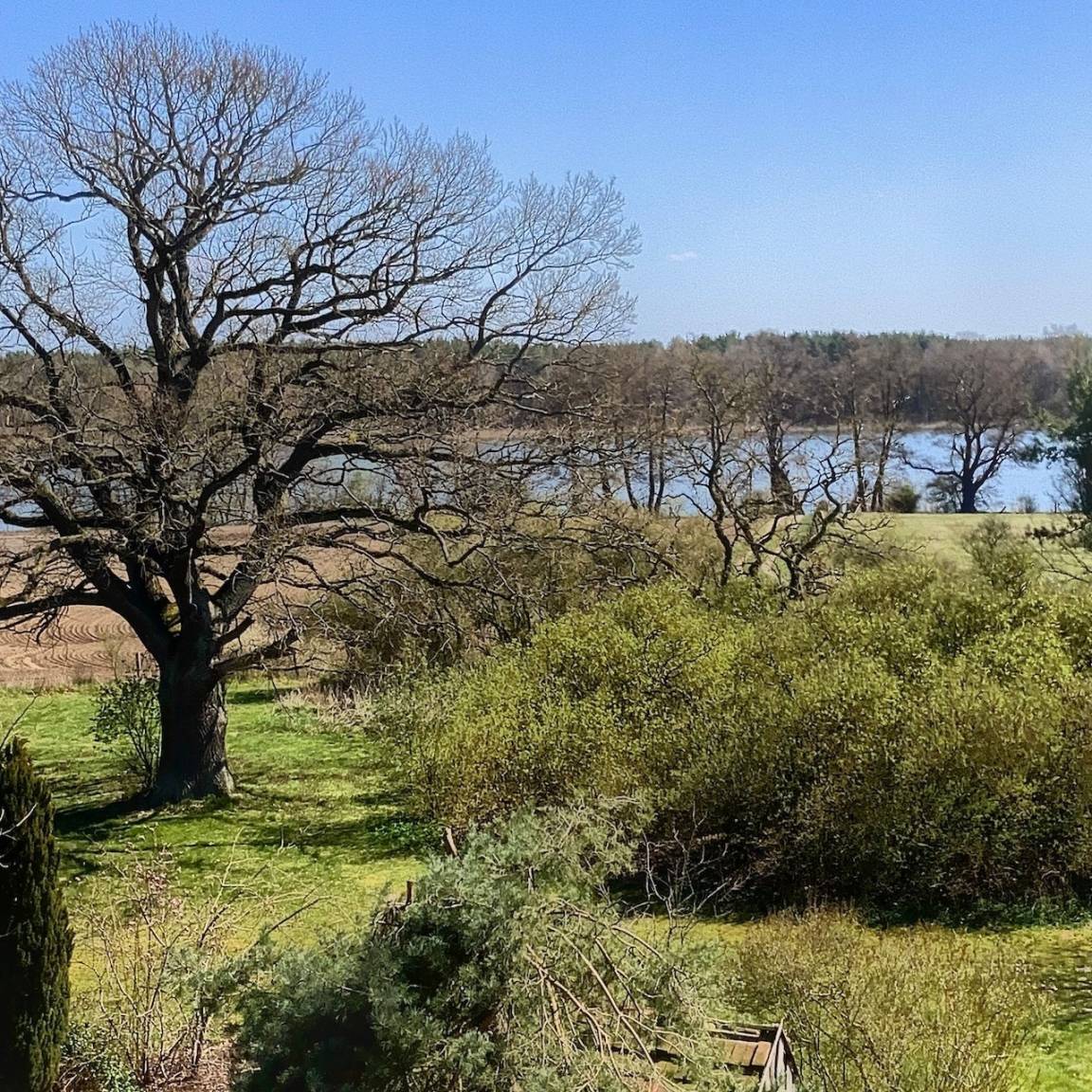 Die Südzimmer sind etwas größer und der Blick geht Richtung See und Garten. Allerdings ist im Sommer wegen der Bäume meist nicht viel vom See zu sehen…