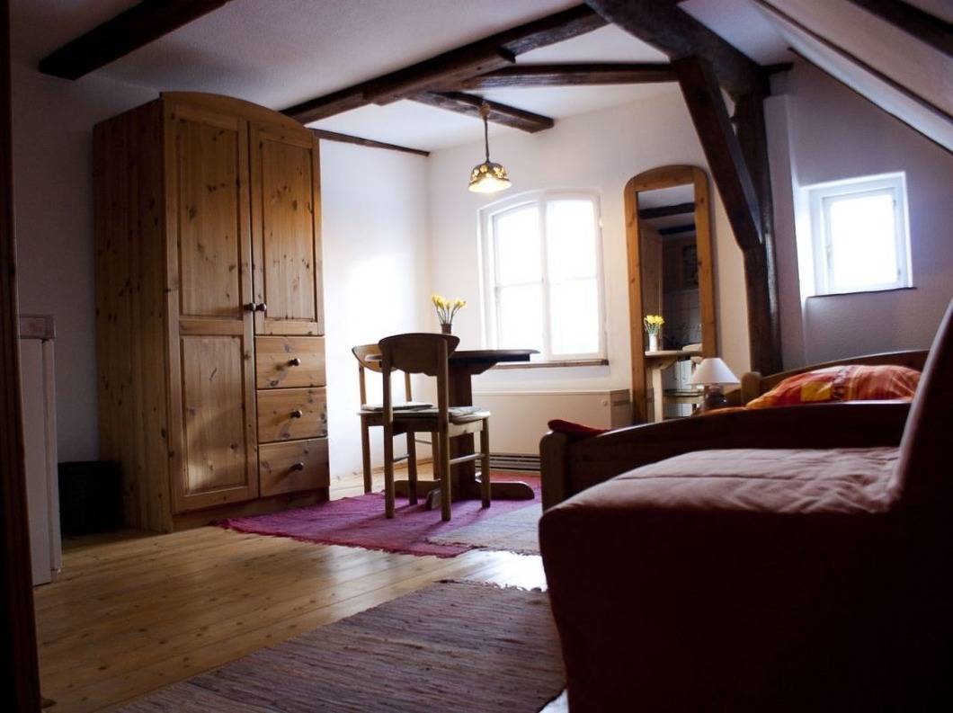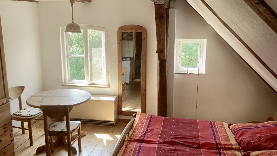 Unsere Zimmer liegen im Dachgeschoss über der Töpferei. Alle Zimmer sind mit Dusche/WC und Miniküche ausgestattet. Sie können sich also selbst verpflegen. Wenn Sie die Zimmer mit Frühstück buchen möchten, ist das aber auch möglich. Bettwäsche ist inklusive, Sie erhalten auch einen Satz Handtücher pro Woche. Es ist kein Fernseher und kein Radio da, auch kein Telefon auf dem Zimmer. Dafür aber viel Natur und ein eigener Seezugang. Genießen Sie unseren weiträumigen Garten und die Ruhe hier.