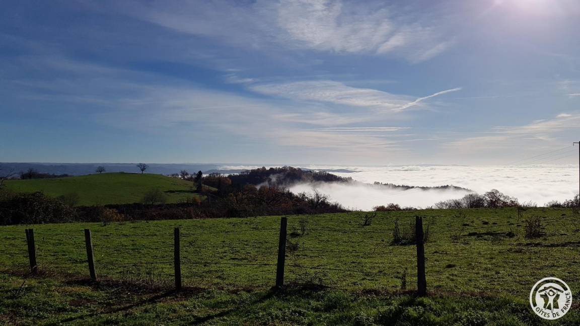 „Nous avons été chaleureusement reçu par la propriétaire et son fils. Le gîte est charmant et nous nous y sentons bien des l'arrivée. Et quelle vue, de la terrasse nous contemplons un paysage magnifique. Devant nous se dressent de douces montagnes, au loin on devine la vallée de la Dordogne. Le matins les vallées sont parfois remblies de brume ce qui donne au paysage un charme fou.“