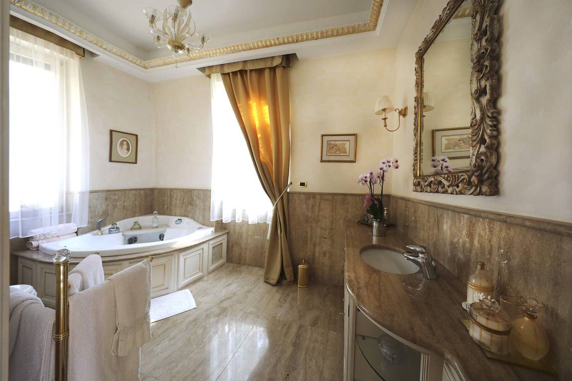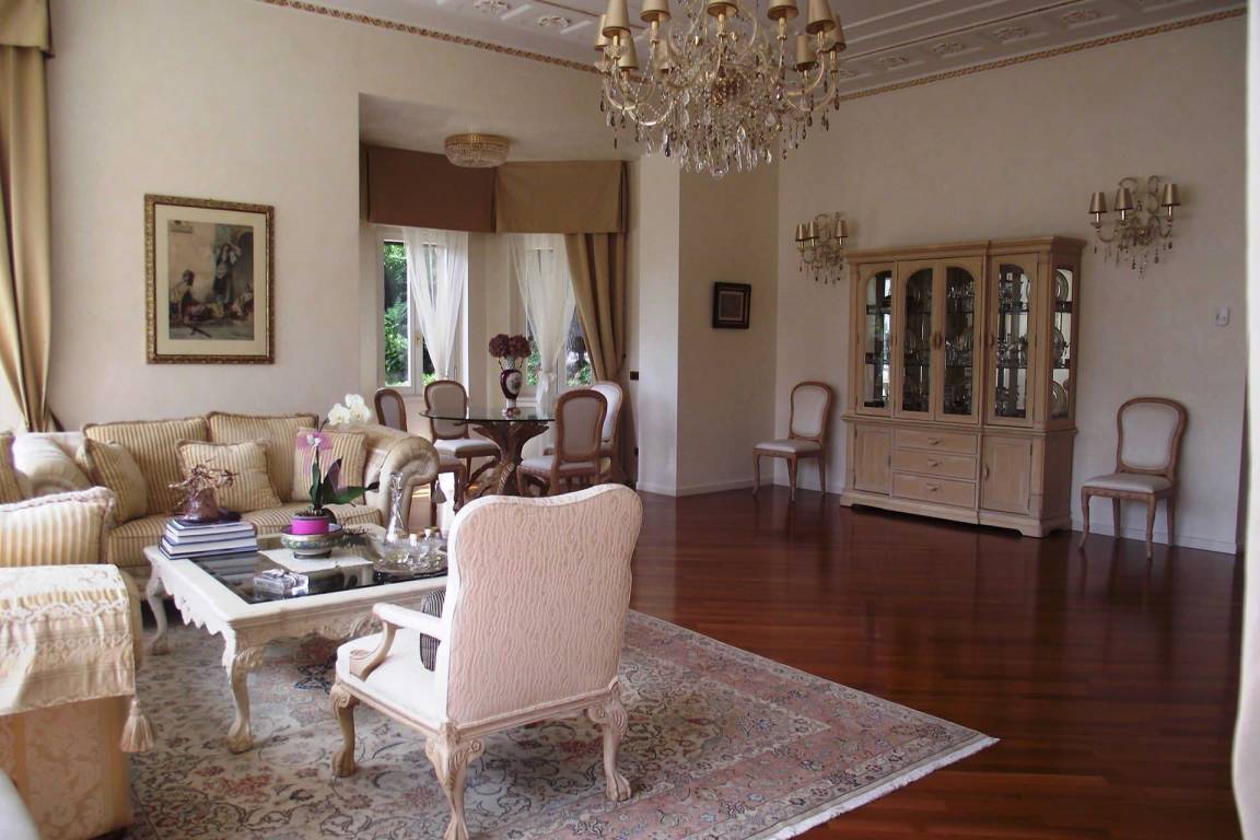 Das Erdgeschoss mit einer Fläche von 210 Quadratmetern bildet das Herzstück der Immobilie. Der Eingangsbereich führt in ein großes, helles Wohnzimmer mit eleganten Sofas, einem Flachbildfernseher mit Sky-Kanälen einschließlich USA- und russischer Programme sowie einem BOSE-Soundsystem. Ein separater Essbereich mit Tisch und Stühlen bietet Ausblicke auf den See und die umliegenden Berge. Die vollständig ausgestattete Küche verfügt über einen Doppelbackofen, eine Mikrowelle und eine Geschirrspülmaschine. Das erste Schlafzimmer auf dieser Ebene ist ein Doppelzimmer mit Klimaanlage und eigenem Bad, das mit einer Teuco-Ultraschall-Whirlpool-Badewanne ausgestattet ist. Das zweite Schlafzimmer bietet 2 Einzelbetten, die zu einem Doppelbett zusammengefügt werden können, und wird von einem zweiten Bad mit Dusche bedient. Das gesamte Erdgeschoss hat direkten Zugang zur privaten Terrasse.