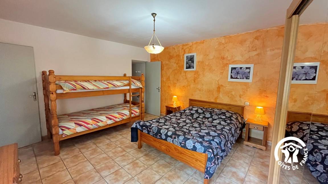 • Schlafzimmer 2: 1 Doppelbett (140 x 190 cm) und 2 Etagenbetten (90 x 190 cm)