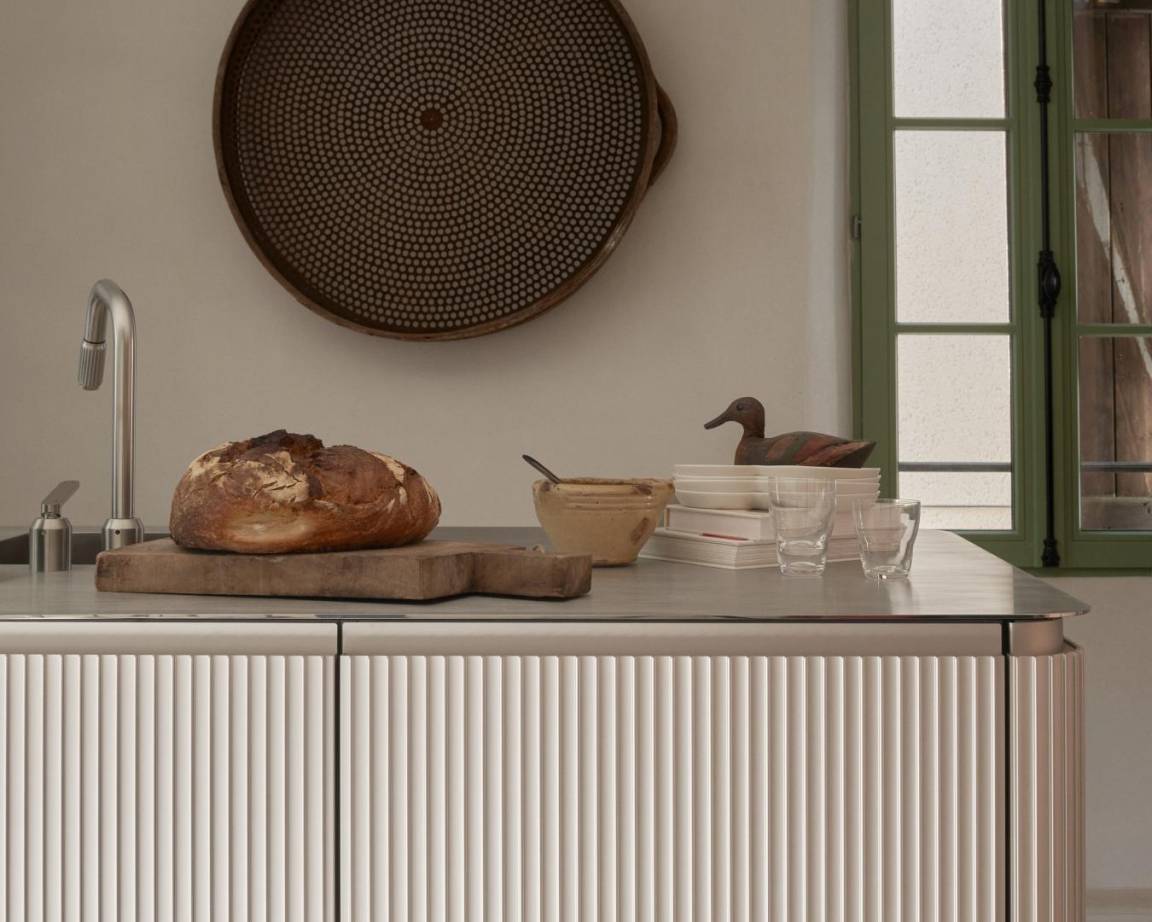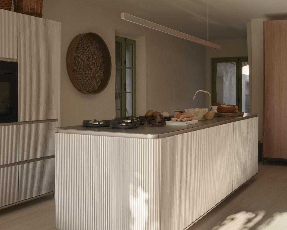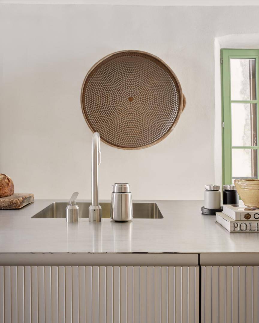 Oll ausgestatteter Kochinsel, Weinkeller, Kaffeemaschine) und Zugang zur Terrasse mit Gartenmöbeln und einem Josper-Grill.