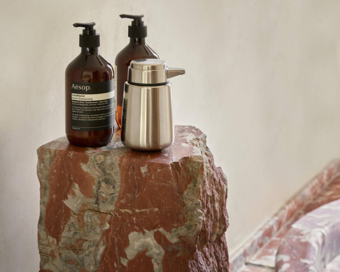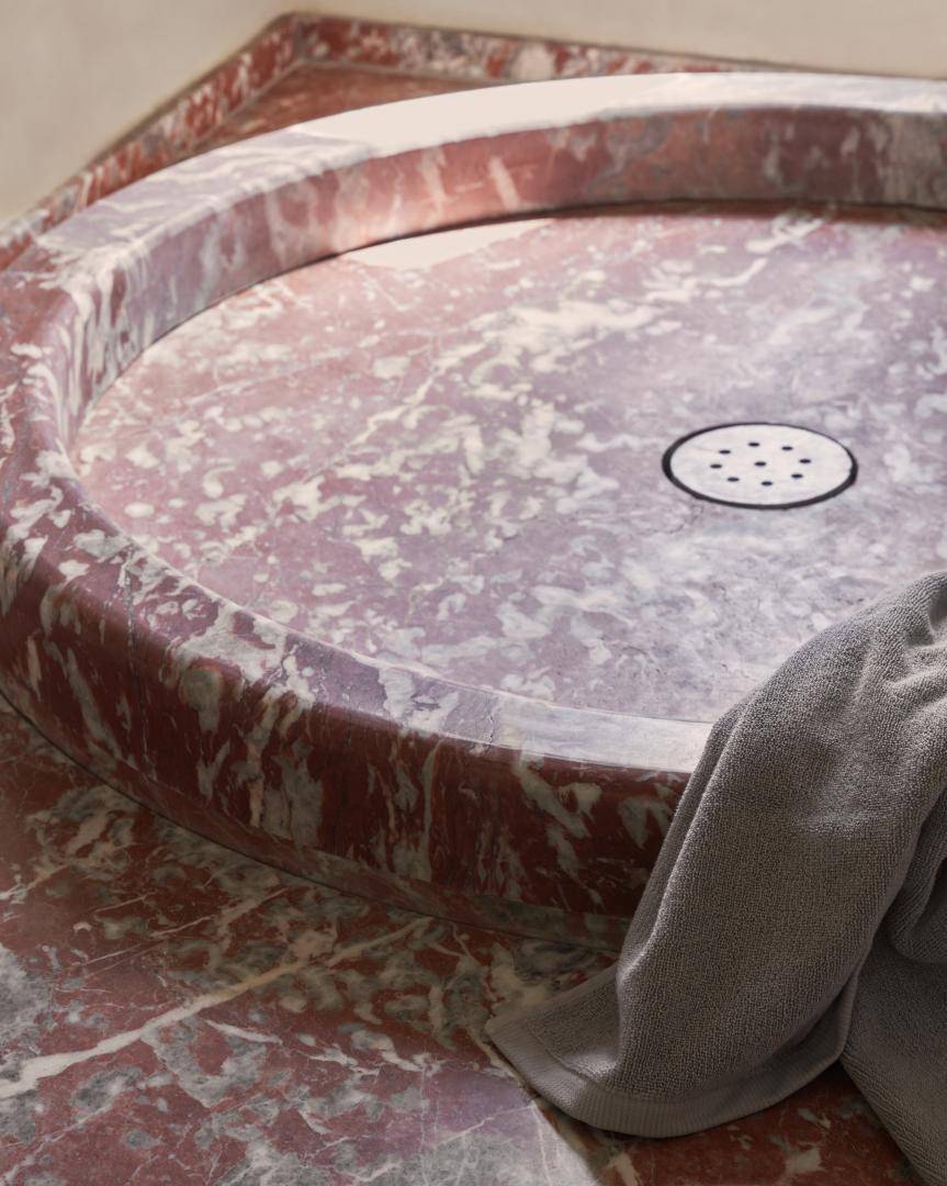 Im Obergeschoss befindet sich eine Suite mit Kingsize-Bett (180 cm), Arbeitsbereich, offenem Badezimmer mit Doppelwaschbecken und Regendusche, Pflegeprodukten von Aesop, Ankleidezimmer mit Safe und separater japanischer Toilette.