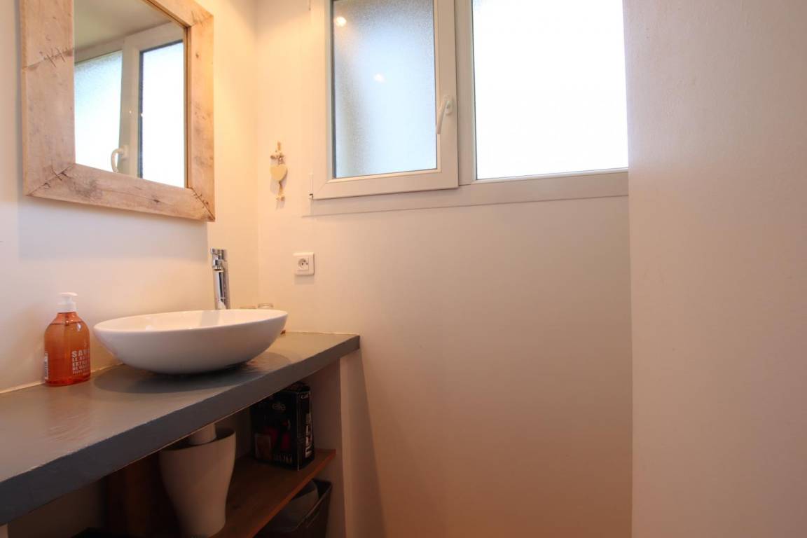 Ausgestattete Küche (Mikrowelle, Cerankochfeld), Essbereich, Wohnzimmer mit Zugang zum Wald. Schlafbereich: 1 Schlafzimmer (1 Doppelbett), Duschbad (Waschbecken, geräumige Dusche), separates WC.