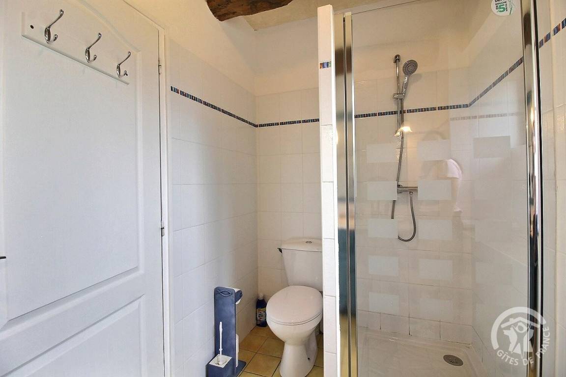 - ein Badezimmer mit Dusche und WC.