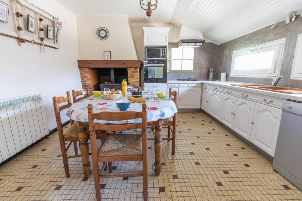 Das Ferienhaus befindet sich im Erdgeschoss und bietet eine separate Küche mit Kaminofen für kühle Abende, Geschirrspüler, Induktionskochfeld, Backofen