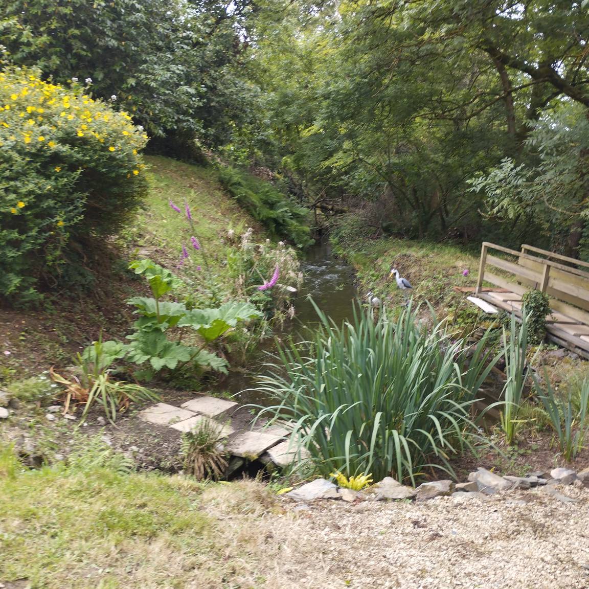 „On a aimé la grande maison, l'immense jardin avec sa propre bois et ruisseau. C'est très paisible et calme. Aucun problème avec les voisins: Il n'y en a pas. Dans le sous-sol il y a encore des restants du moulin.“