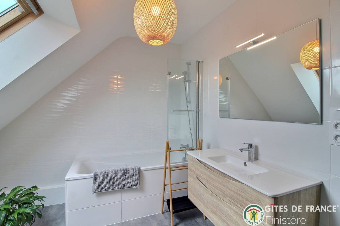 „Belle et grande maison, confortable et bien équipée, au calme avec un grand jardin. Location bien située au centre du bourg, avec plusieurs plages à proximité. Nous avons été chaleureusement accueillis avec des gourmandises bretonnes. Nous recommandons vivement.“